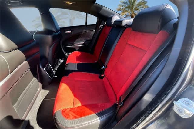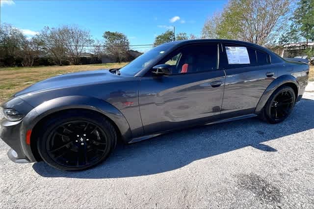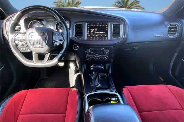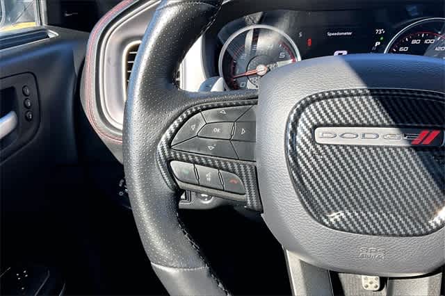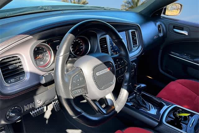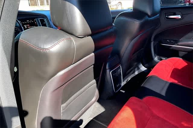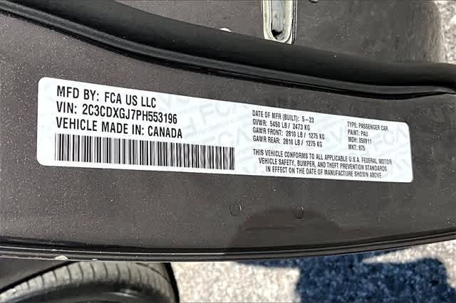 FRESH OIL CHANGE, Ruby Red/Black Artificial Leather, 1-Yr SiriusXM Guardian Trial, 19 harman/kardon GreenEdge Speakers, 2-Piece Shark Fin Antenna, 4-Wheel Disc Brakes, 4G LTE Wi-Fi Hot Spot, 5-Year SiriusXM Traffic Service, 5-Year SiriusXM Travel Link Service, 6 Speakers, 8.4 Touchscreen Display, ABS brakes, Adaptive Damping Suspension (DISC), Air Conditioning, All Speed Traction Control, Alloy wheels, AM/FM radio: SiriusXM, Anti-whiplash front head restraints, Apple CarPlay, Apple CarPlay/Android Auto, Auto Adjust In Reverse Exterior Mirrors, Auto-Dimming Exterior Driver Mirror, Auto-dimming Rear-View mirror, Automatic temperature control, Black-Edged Premium Floormats, Blind Spot & Cross Path Detection, Blind Spot Memory/Power/Heat Mirror, Body Color Fender Flares, Brake assist, Brembo 6-Pot Fixed Front Caliper Brakes, Bumpers: body-color, Cloth Performance Seats w/Heat, Compass, Compass Gauge, Delay-off headlights, Driver & Passenger Lower LED Lamps, Driver door bin, Driver vanity mirror, Dual front impact airbags, Dual front side impact airbags, Electronic Stability Control, Emergency communication system: SiriusXM Guardian, Exterior Mirrors Courtesy Lamps, Exterior Mirrors w/Heating Element, Flat-Bottom Steering Wheel, For Details, Visit DriveUconnect.com, Four wheel independent suspension, Front anti-roll bar, Front Bucket Seats, Front Center Armrest, Front dual zone A/C, Front fog lights, Front License Plate Bracket, Front Overhead LED Lighting, Front reading lights, Fully automatic headlights, Garage door transmitter: HomeLink, Google Android Auto, GPS Antenna Input, GPS Navigation, harman/kardon Audio Group, harman/kardon GreenEdge Amp, HD Radio, Heated door mirrors, Heated Front Seats, Heated front seats, Heated steering wheel, Illuminated entry, Integrated Center Stack Radio, Integrated Voice Command w/Bluetooth, Knee airbag, Leather Shift Knob, Low tire pressure warning, Manufacturers Statement of Origin, Media Hub (2 USB, AUX), Mopar Bright Door Sills, Mopar Interior Appearance Group, MOPAR Premium Floor Mats w/Logo, Navigation & Travel Group, Occupant sensing airbag, Outside temperature display, Overhead airbag, Overhead console, Panic alarm, ParkView Rear Back-Up Camera, Passenger door bin, Passenger vanity mirror, Performance Shift Indicator, Plus Group, Power 2-Way Driver Lumbar Adjust, Power 2-Way Passenger Lumbar Adjust, Power door mirrors, Power driver seat, Power Front Driver/Passenger Seats, Power steering, Power Tilt/Telescope Steering Column, Power windows, Premium-Stitched Dash Panel, Quick Order Package 21V Scat Pack Widebody, Radio: Uconnect 4C Nav w/8.4 Display, Radio: Uconnect 4C w/8.4 Display, Radio/Driver Seat/Mirrors Memory, Rear anti-roll bar, Rear Armrest w/Cupholder Seat, Rear reading lights, Rear seat center armrest, Rear window defroster, Remote keyless entry, Satin Black Hood/Roof/Trunk/Spoiler, Scat Pack Logo Nappa/Alcantara Seat, Security system, SiriusXM Traffic Plus, SiriusXM Travel Link, Speed control, Speed-Sensitive Wipers, Split folding rear seat, Spoiler, Sport steering wheel, Steering wheel mounted audio controls, Surround Sound, Tachometer, Telescoping steering wheel, Tilt steering wheel, Traction control, Trip computer, Trunk Mat w/Logo, USB Host Flip, Variably intermittent wipers, Ventilated Front Seats, Wheels: 20 x 11 Carbon Black Aluminum, Wheels: 20 x 9 Lo Gloss Granite Crystal, Widebody Competition Suspension, Widebody Package, Ruby Red/Black Artificial Leather. Granite Crystal Metallic Clearcoat 2023 Dodge Charger R/T Scat Pack Widebody RWD 8-Speed Automatic SRT HEMI 6.4L V8 MDS