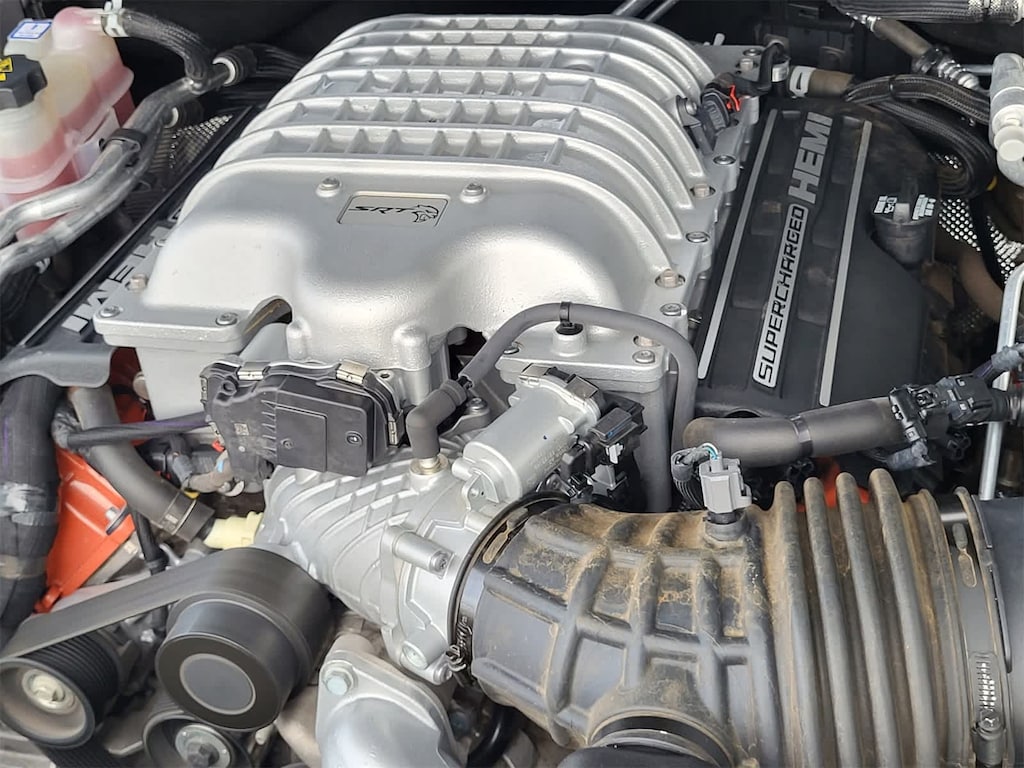 QUICK ORDER PACKAGE 2XW HELLCAT PLUS Engine: 6.2L Supercharged HEMI V8 SRT, Transmission: 8-Speed Automatic (8HP95), Power Sunroof, Trailer Brake Control, Advanced Brake Assist, 7 & 4 Pin Wiring Harness, Adaptive Cruise Control w/Stop, Class IV Receiver Hitch, Full Speed Forward Collision Warning Plus, Lane Departure Warning Plus, BLACK PACKAGE Gray Metallic Badges, Satin Black Dodge Tail Lamp Badge, Wheels: 20 x 10 Lights Out Aluminum, Eclipse Black Exhaust Tip, TRANSMISSION: 8-SPEED AUTOMATIC (8HP95) (STD), ENGINE: 6.2L SUPERCHARGED HEMI V8 SRT (STD). Dodge SRT Hellcat Plus with Destroyer Gray Clearcoat exterior and Demonic Red/Black interior features a 8 Cylinder Engine with 710 HP at 6100 RPM*.