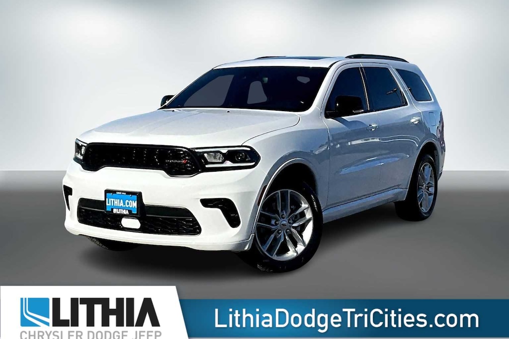 Lithia Chrysler Dodge Jeep Ram of Tri-Cities is pleased to offer this White Knuckle Clearcoat 2024 Dodge Durango GT Plus for purchase, this vehicle is well equipped with many features including:Quick Order Package 2BG GT Plus (1-Year Trial (Registration Required), 10.1 Touchscreen Display, 115V Auxiliary Power Outlet, 180 Amp Alternator, 4G LTE Wi-Fi Hot Spot, 7 & 4 Pin Wiring Harness, Adaptive Cruise Control w/Stop, Apple CarPlay, Auto-Dimming Exterior Driver Mirror, Black Roof Rails, Blind Spot w/Trailer Detection, Class IV Receiver Hitch, Connected Travel & Traffic Services, Disassociated Touchscreen Display, Dual Remote USB Port - Charge Only, Exterior Mirrors w/Heating Element, Exterior Mirrors w/Memory, Exterior Mirrors w/Supplemental Signals, Floor Console w/Leather Armrest, For Details Visit DriveUconnect.com, Full Speed Forward Collision Warning Plus, Global Telematics Box Module (TBM), Gloss Black Exterior Mirrors, Google Android Auto, GPS Antenna Input, GPS Navigation, HD Radio, Heated Second Row Seats, Heavy-Duty Engine Cooling, Integrated Center Stack Radio, Integrated Roof Rail Crossbars, Integrated Voice Command w/Bluetooth, Leather Trimmed Bucket Seats, Leather Wrapped Door Panels, LED Auxiliary Low Beam & Turn Signal, Power 6x9 Multi-Function Foldaway Mirrors, Power 8-Way Driver Memory 8-Way Passenger Seats, Power Driver/Passenger 4-Way Lumbar Adjust, Power Sunroof, Power Tilt & Telescopic Steering Column, Radio: Uconnect 5 Nav w/10.1 Display, Radio/Driver Seat/Mirrors Memory, Rear Load Leveling Suspension, Red Accent Stitching, SiriusXM Guardian - Included Trial (B), SiriusXM w/360L, Trailer Brake Control, USB Host Flip, and Ventilated Front Seats), AWD, 3.45 Rear Axle Ratio, 3rd row seats: split-bench, 4-Wheel Disc Brakes, 6 Speakers, ABS brakes, Air Conditioning, Alloy wheels, AM/FM radio: SiriusXM, Apple CarPlay/Android Auto, Auto-dimming Rear-View mirror, Automatic temperature control, Brake assist, Bumpers: body-color, Cloth Bucket Seats w/Shift Insert, Compass, Delay-off headlights, Driver door bin, Driver vanity mirror, Dual front impact airbags, Dual front side impact airbags, Electronic Stability Control, Four wheel independent suspension, Front anti-roll bar, Front Bucket Seats, Front Center Armrest w/Storage, Front dual zone A/C, Front License Plate Bracket, Front reading lights, Fully automatic headlights, Garage door transmitter, Heated door mirrors, Heated front seats, Heated steering wheel, Illuminated entry, Knee airbag, Leather steering wheel, Low tire pressure warning, Occupant sensing airbag, Outside temperature display, Overhead airbag, Overhead console, Panic alarm, ParkView Rear Back-Up Camera, Passenger door bin, Passenger vanity mirror, Power door mirrors, Power driver seat, Power Liftgate, Power steering, Power windows, Radio data system, Radio: Uconnect 4 w/8.4 Display, Rear air conditioning, Rear anti-roll bar, Rear reading lights, Rear seat center armrest, Rear window defroster, Rear window wiper, Remote keyless entry, Speed control, Speed-sensing steering, Speed-Sensitive Wipers, Split folding rear seat, Spoiler, Sport steering wheel, Steering wheel mounted audio controls, Tachometer, Telescoping steering wheel, Tilt steering wheel, Traction control, Trip computer, Variably intermittent wipers, Voltmeter, and Wheels: 20 x 8.0 Fine SilveR. 2024 Dodge Durango GT Plus AWD.