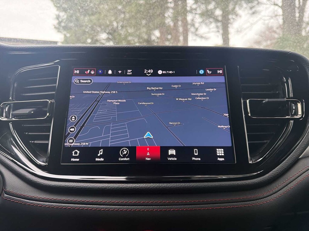Durango GT Plus is nicely equipped with Quick Order Package 2BG GT Plus (1-Year Trial (Registration Required), 10.1 Touchscreen Display, 115V Auxiliary Power Outlet, 180 Amp Alternator, 4G LTE Wi-Fi Hot Spot, 7 & 4 Pin Wiring Harness, Adaptive Cruise Control w/Stop, Apple CarPlay, Auto-Dimming Exterior Driver Mirror, Black Roof Rails, Blind Spot w/Trailer Detection, Class IV Receiver Hitch, Connected Travel & Traffic Services, Disassociated Touchscreen Display, Dual Remote USB Port - Charge Only, Exterior Mirrors w/Heating Element, Exterior Mirrors w/Memory, Exterior Mirrors w/Supplemental Signals, Floor Console w/Leather Armrest, For Details Visit DriveUconnect.com, Full Speed Forward Collision Warning Plus, Global Telematics Box Module (TBM), Gloss Black Exterior Mirrors, Google Android Auto, GPS Antenna Input, GPS Navigation, HD Radio, Heated Second Row Seats, Heavy-Duty Engine Cooling, Integrated Center Stack Radio, Integrated Roof Rail Crossbars, Integrated Voice Command w/Bluetooth, Leather Trimmed Bucket Seats, Leather Wrapped Door Panels, LED Auxiliary Low Beam & Turn Signal, Power 6x9 Multi-Function Foldaway Mirrors, Power 8-Way Driver Memory 8-Way Passenger Seats, Power Driver/Passenger 4-Way Lumbar Adjust, Power Sunroof, Power Tilt & Telescopic Steering Column, Radio: Uconnect 5 Nav w/10.1 Display, Radio/Driver Seat/Mirrors Memory, Rear Load Leveling Suspension, Red Accent Stitching, SiriusXM Guardian - Included Trial (B), SiriusXM w/360L, Trailer Brake Control, USB Host Flip, and Ventilated Front Seats), Durango GT Plus, 4D Sport Utility, 3.6L V6 24V VVT, 8-Speed Automatic, AWD, Octane Red Pearlcoat, Black w/Cloth Bucket Seats w/Shift Insert or Leather Trimmed Bucket Seats or SRT Performance Seat, 3.45 Rear Axle Ratio, 3rd row seats: split-bench, 4-Wheel Disc Brakes, 6 Speakers, ABS brakes, Air Conditioning, Alloy wheels, AM/FM radio: SiriusXM, Apple CarPlay/Android Auto, Auto-dimming Rear-View mirror, Automatic temperature control, Brake assist, Bumpers: body-color, Cloth Bucket Seats w/Shift Insert, Compass, Delay-off headlights, Driver door bin, Driver vanity mirror, Dual front impact airbags, Dual front side impact airbags, Electronic Stability Control, Four wheel independent suspension, Front anti-roll bar, Front Bucket Seats, Front Center Armrest w/Storage, Front dual zone A/C, Front License Plate Bracket, Front reading lights, Fully automatic headlights, Garage door transmitter, Heated door mirrors, Heated front seats, Heated steering wheel, Illuminated entry, Knee airbag, Leather steering wheel, Low tire pressure warning, Occupant sensing airbag, Outside temperature display, Overhead airbag, Overhead console, Panic alarm, ParkView Rear Back-Up Camera, Passenger door bin, Passenger vanity mirror, Power door mirrors, Power driver seat, Power Liftgate, Power steering, Power windows, Radio data system, Radio: Uconnect 4 w/8.4 Display, Rear air conditioning, Rear anti-roll bar, Rear reading lights, Rear seat center armrest, Rear window defroster, Rear window wiper, Remote keyless entry, Speed control, Speed-sensing steering, Speed-Sensitive Wipers, Split folding rear seat, Spoiler, Sport steering wheel, Steering wheel mounted audio controls, Tachometer, Telescoping steering wheel, Tilt steering wheel, Traction control, Trip computer, Variably intermittent wipers, Voltmeter, and Wheels: 20 x 8.0 Fine SilveR.