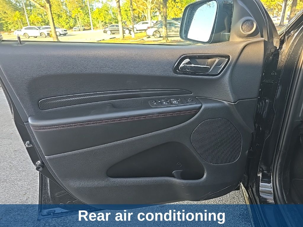 This Durango is well equipped with Quick Order Package 2BD GT, Durango GT, 4D Sport Utility, 3.6L V6 24V VVT, 8-Speed Automatic, AWD, DB Black Crystal Clearcoat, Black Cloth, 3.45 Rear Axle Ratio, 3rd row seats: split-bench, 4-Wheel Disc Brakes, 6 Speakers, ABS brakes, Air Conditioning, Alloy wheels, AM/FM radio: SiriusXM, Apple CarPlay, Apple CarPlay/Android Auto, Auto-dimming Rear-View mirror, Automatic temperature control, Brake assist, Bumpers: body-color, Cloth Bucket Seats w/Shift Insert, Compass, Delay-off headlights, Driver door bin, Driver vanity mirror, Dual front impact airbags, Dual front side impact airbags, Electronic Stability Control, Exterior Mirrors w/Heating Element, Four wheel independent suspension, Front anti-roll bar, Front Bucket Seats, Front Center Armrest w/Storage, Front dual zone A/C, Front License Plate Bracket, Front reading lights, Fully automatic headlights, Garage door transmitter, Gloss Black Exterior Mirrors, Google Android Auto, GPS Antenna Input, Heated door mirrors, Heated front seats, Heated steering wheel, Illuminated entry, Integrated Center Stack Radio, Integrated Voice Command w/Bluetooth, Knee airbag, Leather steering wheel, Low tire pressure warning, Occupant sensing airbag, Outside temperature display, Overhead airbag, Overhead console, Panic alarm, ParkView Rear Back-Up Camera, Passenger door bin, Passenger vanity mirror, Power door mirrors, Power driver seat, Power Liftgate, Power steering, Power windows, Radio data system, Radio: Uconnect 4 w/8.4" Display, Rear air conditioning, Rear anti-roll bar, Rear reading lights, Rear seat center armrest, Rear window defroster, Rear window wiper, Red Accent Stitching, Remote keyless entry, Speed control, Speed-sensing steering, Speed-Sensitive Wipers, Split folding rear se