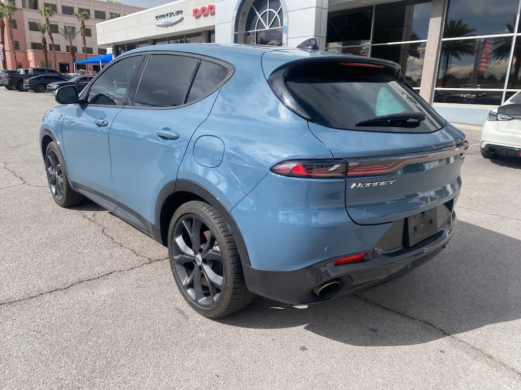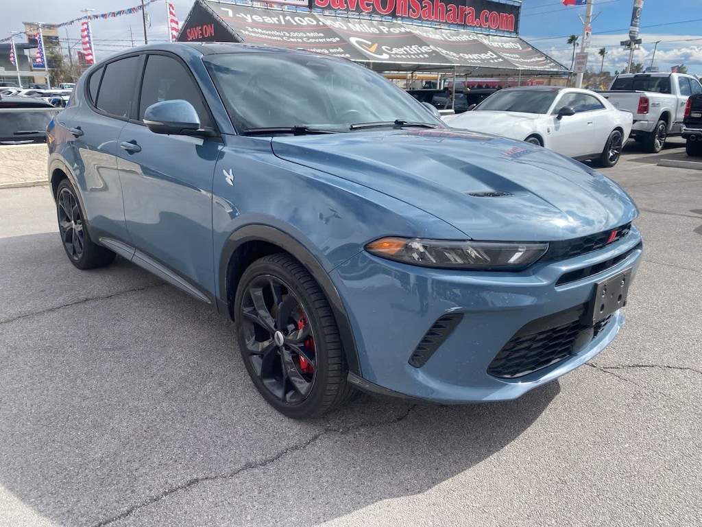 Our One Owner, Accident Free 2024 Dodge Hornet R/T Plus AWD blends bold style and performance in Blue Steele! Powered by a TurboCharged 1.3 Liter 4 Cylinder and an Electric Motor supplying a combined 288hp to a paddle-shifted 6 Speed Aisin Automatic transmission. Engage PowerShot for maximum acceleration and hold onto the corners with Brembo brakes and a KONI selective damping suspension. This All Wheel Drive SUV also features plug-in capability for nearly 32 miles of EV travel, then switches to gas-hybrid mode to keep on going. Our Hornets dramatic design delivers a dynamic GT grille, LED lighting, a power sunroof, a hands-free liftgate, alloy wheels, and heated power-folding mirrors.