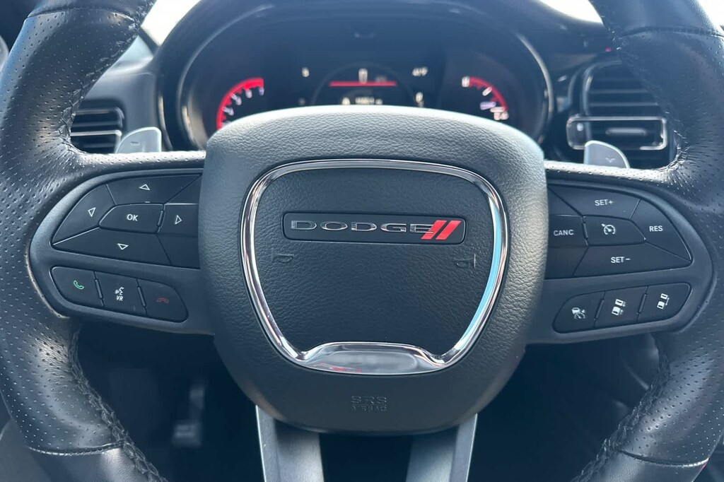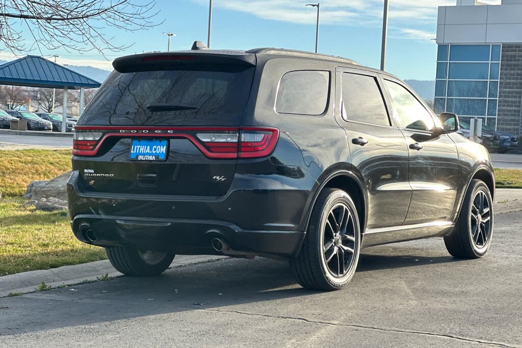 QUICK ORDER PACKAGE 22T R/T Engine: 5.7L HEMI VVT V8 w/MDS, Transmission: 8-Speed Automatic, 4 & 7-Pin Wiring Harness, Integrated Roof Rail Crossbars, Power 4-Way Driver & Passenger Seat Lumbar, LED Auxiliary Low Beam Headlamps & Turn Signal, Power Sunroof, Auto-Dimming Exterior Driver Mirror, Dual Remote USB Charging Port, Trailer Brake Control, Second-Row Heated Seats, Black Roof Rails, Class IV Hitch Receiver, Blind-Spot Monitoring w/Trailer Detection, Floor Console w/Leather Armrest, Power 6x9 Multi-Function Fold-Away Mirrors, Power Tilt/Telescoping Steering Column, Exterior Mirrors w/Turn Signals, Power 8-Way Driver Memory & Passenger Seats, Front Ventilated Seats, Full-Speed Forward Collision Warning Plus, Automatic High-Beam Headlamp Control, 115-Volt Auxiliary Power Outlet, TRANSMISSION: 8-SPEED AUTOMATIC (STD), ENGINE: 5.7L HEMI VVT V8 W/MDS (STD). 2025 Dodge Durango with DB Black exterior and Black interior features a 8 Cylinder Engine with 360 HP at 5150 RPM*.
