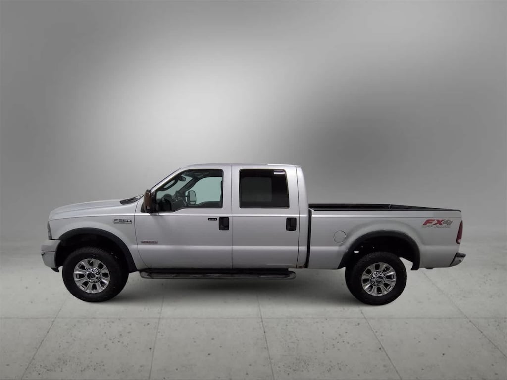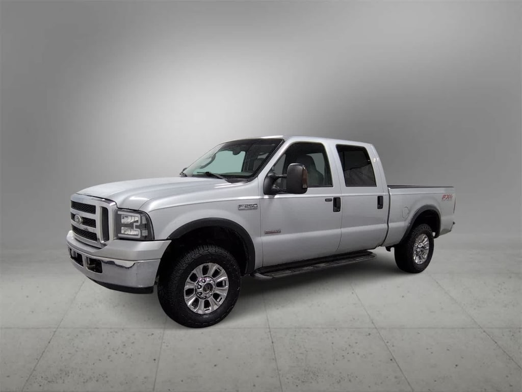 Its time to look at our Diesel-powered, Accident Free 2005 Ford F-250 Super Duty Lariat Crew Cab 4X4 showcased in Silver Clearcoat Metallic, a hard-core truck civilized enough for everyday use presented in Black. Motivated by a TurboCharged 6.0 Liter PowerStroke Diesel V8 that offers 325hp matched to a TorqShift 5 Speed Automatic transmission that is built Ford Tough! This Four Wheel Drive truck is ready for work or play plus looks good with running boards, solar-tinted glass, box lighting, a bed liner, front fog lamps, and a bright grille surround.
