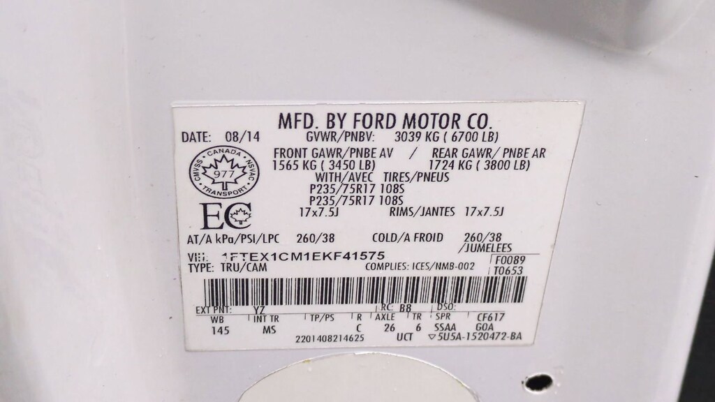 2014 Ford F-150 XLT Is nicely equipped with Equipment Group 300A Base, Trailer Tow Package (Auxiliary Transmission Oil Cooler, SelectShift Transmission, and Upgraded Radiator), GVWR: 6,700 lbs Payload Package, ABS brakes, Alloy wheels, Compass, Electronic Stability Control, Illuminated entry, Low tire pressure warning, Remote keyless entry, SYNC Voice Activated Communication & Entertainment, Traction control, 17" Machined-Aluminum w/Painted Accents Wheels, 3.73 Axle Ratio, 4 Speakers, 4-Wheel Disc Brakes, Air Conditioning, AM/FM radio, Bumpers: chrome, CD player, Cloth 40/20/40 Front Seat, Delay-off headlights, Driver door bin, Driver vanity mirror, Dual front impact airbags, Dual front side impact airbags, Front anti-roll bar, Front Center Armrest w/Storage, Front fog lights, Front reading lights, Front wheel independent suspension, Fully automatic headlights, Occupant sensing airbag, Outside temperature display, Overhead airbag, Overhead console, Panic alarm, Passenger door bin, Passenger vanity mirror, Power door mirrors, Power steering, Power windows, Radio data system, Radio: AM/FM Stereo/Single-CD Player w/Clock, Rear step bumper, Security system, Speed control, Speed-sensing steering, Split folding rear seat, Steering wheel mounted audio controls, Tachometer, Tilt steering wheel, and Variably intermittent wipers.