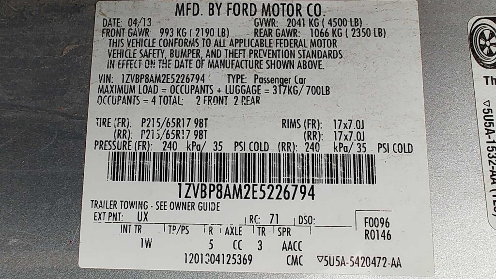 EQUIPMENT GROUP 102A Tech Package, Auto-Dimming Mirror, SYNC Communications & Entertainment System, 911 Assist, VHR, SYNC Services, AppLink, Bluetooth®, USB port and auxiliary input jack, 6-Way Power Driver Seat, Fog Lamps, TRANSMISSION: 6-SPEED AUTOMATIC SelectShift functionality, REVERSE SENSING SYSTEM & SECURITY PACKAGE Reverse Sensing System, Wheel Locking Kit, Active Anti-Theft System, ENGINE: 3.7L 4V TI-VCT V6 (STD). Ford V6 with Ingot Silver Metallic exterior and Charcoal Black interior features a V6 Cylinder Engine with 305 HP at 6500 RPM*.