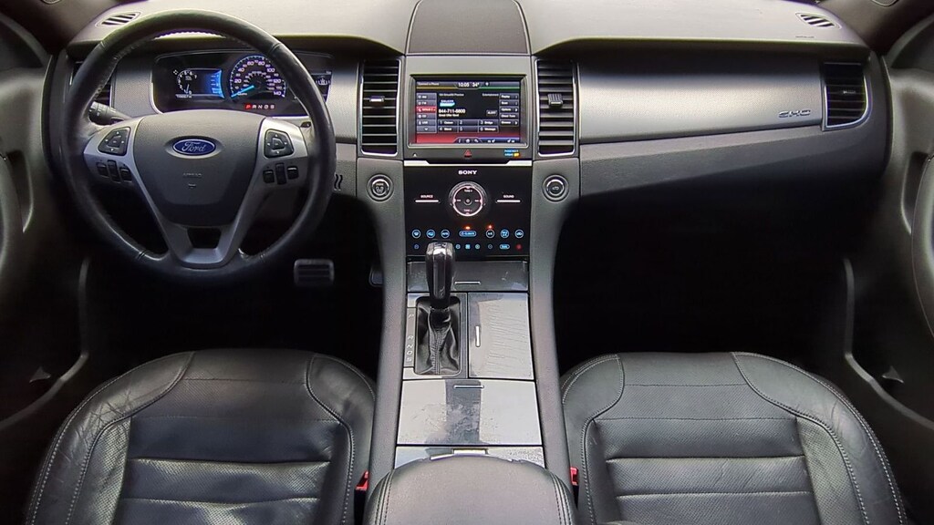 Recent Arrival! Clean CARFAX. 2014 Ford Taurus SHO Is nicely equipped with Equipment Group 401A (2nd Row Heated Seats, Auto High Beam/Rain Sensing Wipers, BLIS Blind Spot Information System w/Cross Traffic Alert, HD Radio, Heated Steering Wheel, Rear Power Sunshade, and Sony Audio System), AWD, Power Moonroof, Voice Activated Navigation, Wheels: 20" Machined Finish, 4-Wheel Disc Brakes, 7 Speakers, ABS brakes, Adjustable pedals, Air Conditioning, Alloy wheels, AM/FM radio: SiriusXM, AM/FM Stereo/Single CD/MP3 Capable, Auto tilt-away steering wheel, Auto-dimming door mirrors, Auto-dimming Rear-View mirror, Automatic temperature control, Brake assist, Bumpers: body-color, CD player, Compass, Delay-off headlights, Driver door bin, Driver vanity mirror, Dual front impact airbags, Dual front side impact airbags, Electronic Stability Control, Exterior Parking Camera Rear, Four wheel independent suspension, Front anti-roll bar, Front Bucket Seats, Front Center Armrest, Front dual zone A/C, Front reading lights, Fully automatic headlights, Garage door transmitter: HomeLink, Heated & Cooled Leather Trimmed Bucket Seats, Heated door mirrors, Heated front seats, High-Intensity Discharge Headlights, Illuminated entry, Low tire pressure warning, Memory seat, Multi Contour Seats w/Active Motion, Occupant sensing airbag, Outside temperature display, Overhead airbag, Overhead console, Panic alarm, Passenger door bin, Passenger vanity mirror, Pedal memory, Power door mirrors, Power driver seat, Power passenger seat, Power steering, Power windows, Radio data system, Rear anti-roll bar, Rear Parking Sensors, Rear reading lights, Rear seat center armrest, Rear window defroster, Remote keyless entry, Security system, Speed control, Speed-sensing steering, Speed-Sensitive Wipers, Split folding rear seat, Spoiler, Steering wheel memory, Steering wheel mounted audio controls, SYNC w/MyFord Touch & SYNC Services, Tachometer, Telescoping steering wheel, Tilt steering wheel, Traction control, Trip computer, Variably intermittent wipers, and Ventilated front seats.