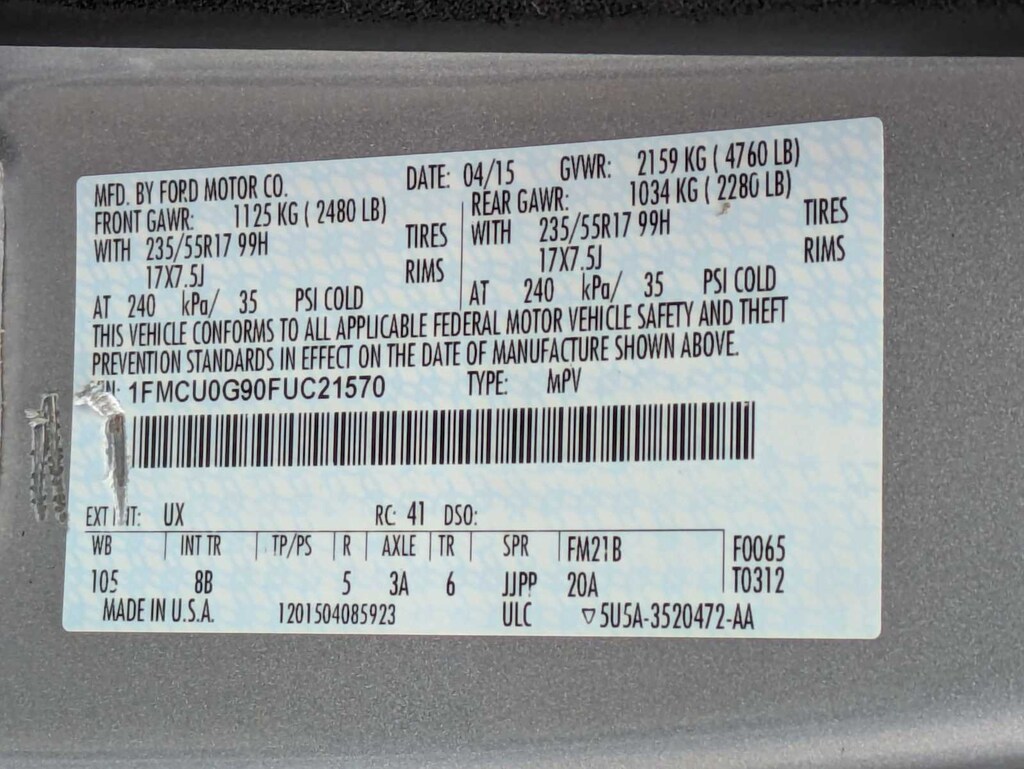 Ingot Silver 2015 Ford Escape SE FWD 6-Speed Automatic EcoBoost 2.0L I4 GTDi DOHC Turbocharged VCT