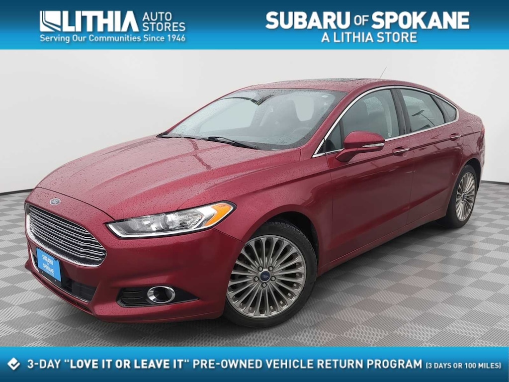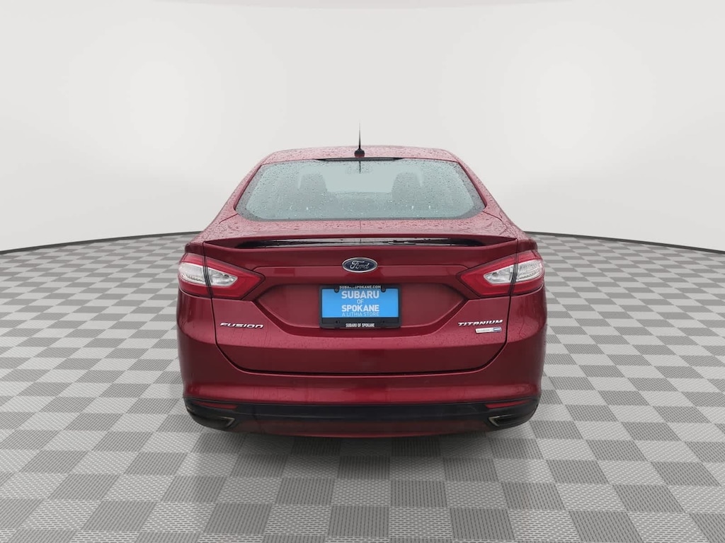Ruby Red 2015 Ford Fusion Titanium AWD 6-Speed Automatic EcoBoost 2.0L I4 GTDi DOHC Turbocharged VCT 6-Speed Automatic, AWD, 110V Power Outlet, 12 Speakers, 18 Polished Aluminum Wheels, 4-Wheel Disc Brakes, ABS brakes, Adaptive Cruise Control, Air Conditioning, Alloy wheels, AM/FM radio: SiriusXM, Auto High Beams, Auto-dimming door mirrors, Auto-dimming Rear-View mirror, Automatic temperature control, BLIS w/Cross Traffic Alert, Brake assist, Bumpers: body-color, CD player, Compass, Delay-off headlights, Driver door bin, Driver vanity mirror, Dual front impact airbags, Dual front side impact airbags, Electronic Stability Control, Equipment Group 300A, Exterior Parking Camera Rear, Four wheel independent suspension, Front anti-roll bar, Front Bucket Seats, Front Center Armrest, Front dual zone A/C, Front fog lights, Front License Plate Bracket, Front reading lights, Fully automatic headlights, Heated door mirrors, Heated front seats, Heated Steering Wheel, Heated/Cooled Driver and Passenger Seats, Illuminated entry, Knee airbag, Lane Departure Warning w/Lane Keep Assist, Leather Shift Knob, Leather-Trimmed Heated Sport Bucket Seats, Low tire pressure warning, Memory seat, Moonroof, Occupant sensing airbag, Outside temperature display, Overhead airbag, Overhead console, Panic alarm, Passenger door bin, Passenger vanity mirror, Power door mirrors, Power driver seat, Power passenger seat, Power steering, Power windows, Radio data system, Radio: AM/FM Stereo/MP3/Single-CD, Rain-Sensing Wipers, Rear anti-roll bar, Rear Parking Sensors, Rear reading lights, Rear seat center armrest, Rear window defroster, Remote keyless entry, Security system, SIRIUS Satellite Radio, Speed control, Speed-sensing steering, Speed-Sensitive Wipers, Split folding rear seat, Spoiler, Steering wheel mounted audio controls, SYNC w/MyFord Touch, Tachometer, Telescoping steering wheel, Tilt steering wheel, Titanium Driver Assist Package, Traction control, Trip computer, Turn signal indicator mirrors, Universal Garage Door Opener, Variably intermittent wipers, Voice-Activated Navigation, 6-Speed Automatic, AWD.