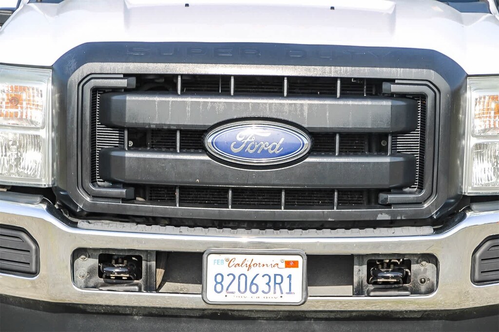 This 2015 Ford F-450SD XL is finished in the Oxford White exterior paint and Steel Vinyl interior.