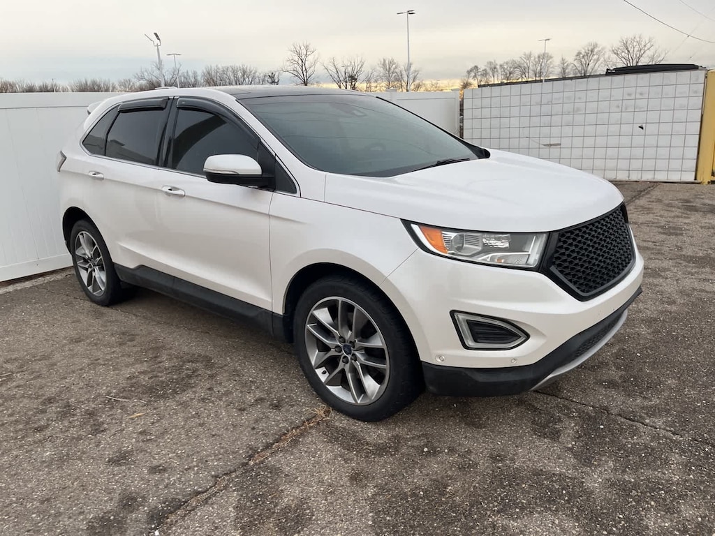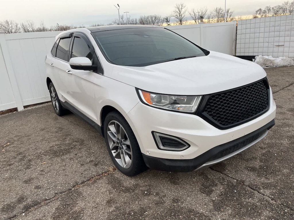 White Platinum Clearcoat Metallic 17/25 City/Highway MPG 2016 Ford Edge Titanium AWD 6-Speed Automatic with Select-Shift 3.5L V6 Ti-VCT AWD.