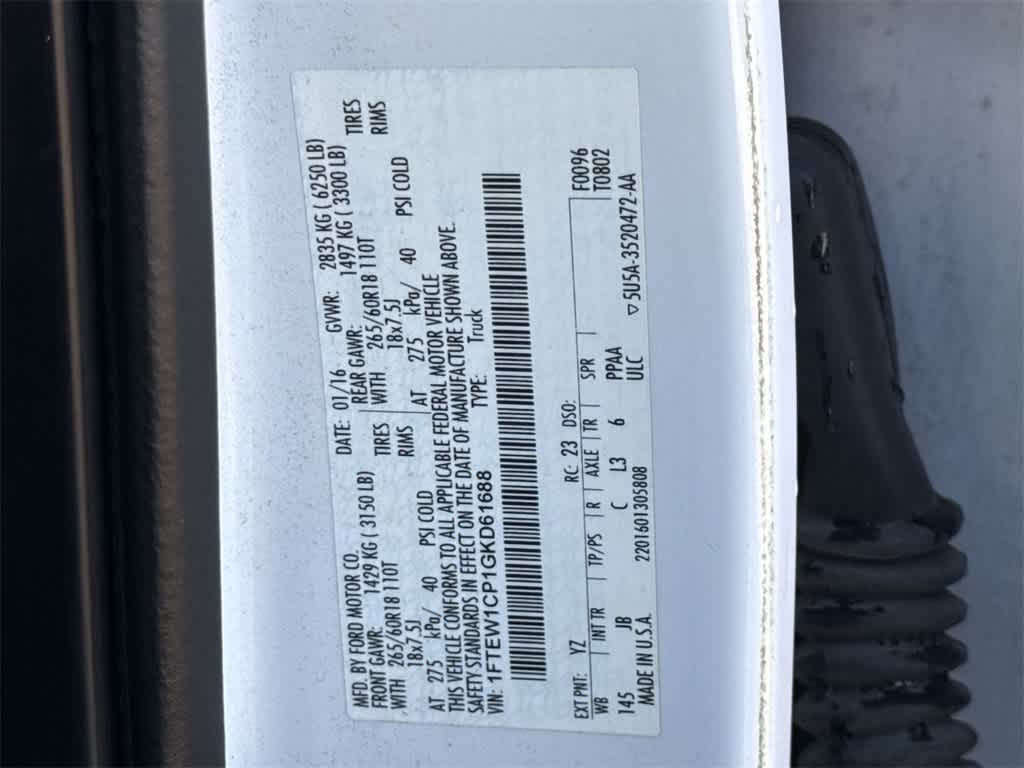 EQUIPMENT GROUP 302A LUXURY Radio: Single-CD w/SiriusXM Satellite, SiriusXM US satellite service is available in the 48 contiguous United States and D.C, 7 speakers, Rear View Camera w/Dynamic Hitch Assist, Class IV Trailer Hitch Receiver, towing capability up to 5,000 lbs, smart trailer tow connector and 4-pin/7-pin wiring harness, XLT Chrome Appearance Package, Single-Tip Chrome Exhaust, Chrome Door & Tailgate Handles w/Body-Color Bezel, bezel on side doors and black on tailgate, Wheels: 18 Chrome-Like PVD, Chrome Billet Style Grille w/Chrome Surround, black mesh insert, Chrome Step Bars, Tires: P265/60R18 BSW A/S, Leather-Wrapped Steering Wheel, Remote Start System, 10-Way Power Drivers & Passenger Seats, SYNC 3, Enhanced voice recognition communications and entertainment system w/911, ENGINE: 2.7L V6 ECOBOOST auto start/stop technology system, 3.31 Axle Ratio, GVWR: 6,250 lbs Payload Package, ELECTRONIC LOCKING W/3.31 AXLE RATIO, XLT SPORT APPEARANCE PACKAGE unique interior finish, Box Side Decal, Single-Tip Chrome Exhaust, Body-Color Door & Tailgate Handles, body-color bezel on side doors and black on tailgate, Wheels: 18 6-Spoke Machined-Aluminum, magnetic painted pockets, Accent-Color Step Bars, Body-Color Front & Rear Bumpers, body-color front fascia and wheellip moldings, Black Billet Style Grille w/Body-Color Surround, black mesh insert, Tires: P265/60R18 BSW A/S.