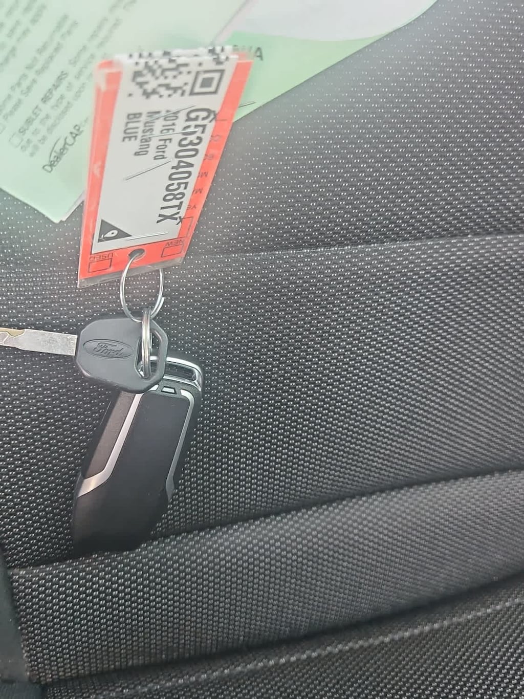 Lithia Ford and Lincoln of Fresno is pleased to offer this Deep Impact Blue Metallic 2016 Ford Mustang V6 for purchase, this vehicle is well equipped with many features including: Equipment Group 050A, 4-Wheel Disc Brakes, 6 Speakers, ABS brakes, Air Conditioning, Alloy wheels, AM/FM radio, AM/FM Stereo w/Single CD Player, Auto-dimming Rear-View mirror, Brake assist, Bumpers: body-color, CD player, Cloth Bucket Seats, Compass, Delay-off headlights, Driver door bin, Driver vanity mirror, Dual front impact airbags, Dual front side impact airbags, Electronic Stability Control, Emergency communication system: 911 Assist, Exterior Parking Camera Rear, Four wheel independent suspension, Front anti-roll bar, Front Bucket Seats, Front Center Armrest, Front reading lights, Fully automatic headlights, High-Intensity Discharge Headlights, Illuminated entry, Knee airbag, Low tire pressure warning, Occupant sensing airbag, Outside temperature display, Overhead airbag, Overhead console, Panic alarm, Passenger door bin, Passenger vanity mirror, Power door mirrors, Power steering, Power windows, Radio data system, Rear anti-roll bar, Rear window defroster, Remote keyless entry, Security system, Speed control, Speed-sensing steering, Speed-Sensitive Wipers, Split folding rear seat, Steering wheel mounted audio controls, SYNC Communications & Entertainment System, Tachometer, Telescoping steering wheel, Tilt steering wheel, Traction control, Trip computer, Variably intermittent wipers, Voltmeter, and Wheels: 17 x 7.5 Sparkle Silver Painted Aluminum. RWD 3.7L V6 Ti-VCT 24V 6-Speed Manual V6