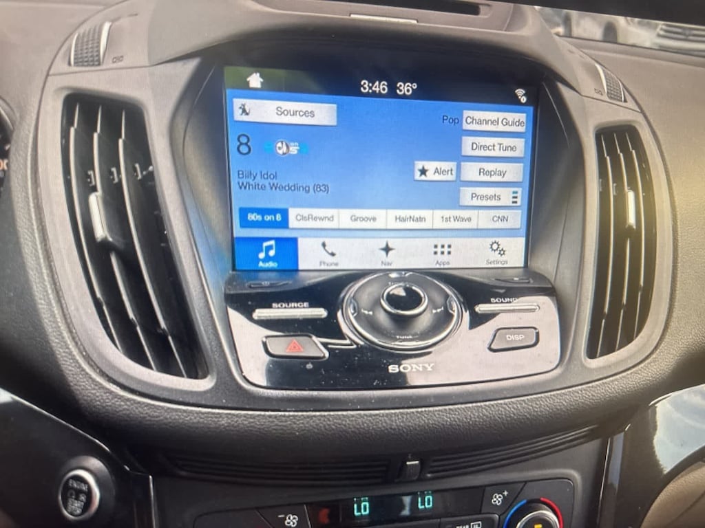 Technology and convenience features include SYNC 3 Communications and Entertainment System, AM/FM/MP3/CD audio, SiriusXM, 10speaker premium audio, navigation capability, autodimming rearview mirror, garage door transmitter, remote keyless entry, remote start, and rainsensing wipers. Exterior features include 18inch Sparkle Silver aluminum wheels, fog lights, bixenon HID headlamps, heated mirrors, power liftgate, rear parking sensors, and turnsignal mirrors.