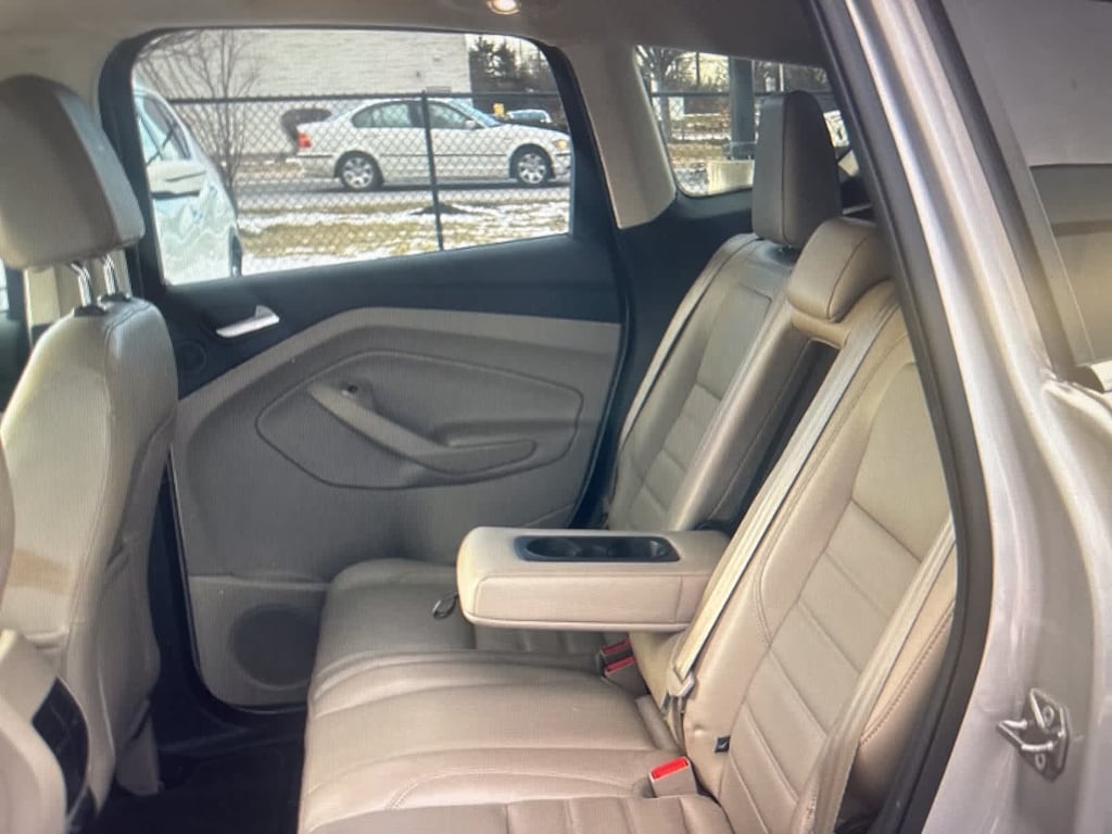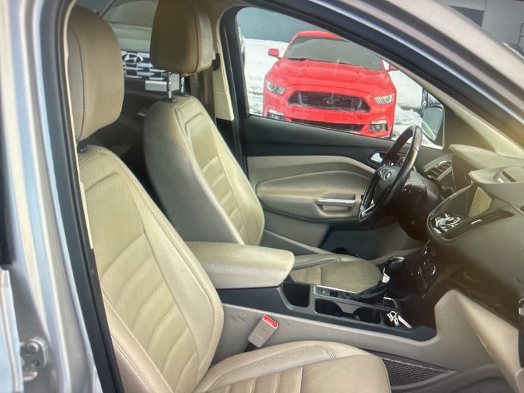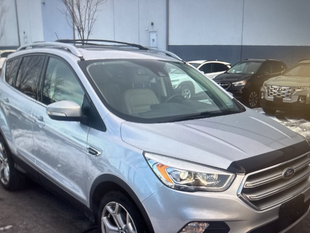 Clean CARFAX. Ingot Silver 2017 Ford Escape Titanium 4WD 6-Speed Automatic EcoBoost 2.0L I4 GTDi DOHC Turbocharged VCT 4WD, 10 Speakers, 3.51 Axle Ratio, 4-Wheel Disc Brakes, ABS brakes, Adaptive Cruise Control, Air Conditioning, All-Weather Floor Mats (Front & Rear), Alloy wheels, AM/FM radio: SiriusXM, Auto High Beams, Auto-dimming Rear-View mirror, Automatic temperature control, Bi-Xenon High-Intensity Discharge Headlamps, Black Roof-Rail Cross Bars, Brake assist, Bumpers: body-color, CD player, Class II Trailer Tow Prep Package, Compass, Delay-off headlights, Driver door bin, Driver vanity mirror, Dual front impact airbags, Dual front side impact airbags, Electronic Stability Control, Emergency communication system: SYNC 3 911 Assist, Enhanced Active Park Assist System, Equipment Group 301A, Exterior Parking Camera Rear, Four wheel independent suspension, Front anti-roll bar, Front Bucket Seats, Front Center Armrest, Front dual zone A/C, Front fog lights, Front reading lights, Fully automatic headlights, Garage door transmitter, Heated door mirrors, Heated front seats, Heated Leather-Trimmed Buckets w/60/40 Rear Seat, Heated Steering Wheel, Illuminated entry, Knee airbag, Lane-Keeping System, Leather Shift Knob, Low tire pressure warning, Memory seat,