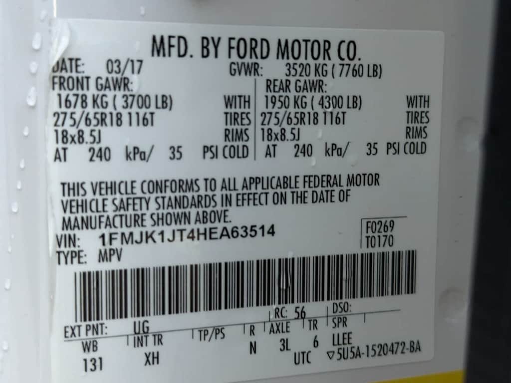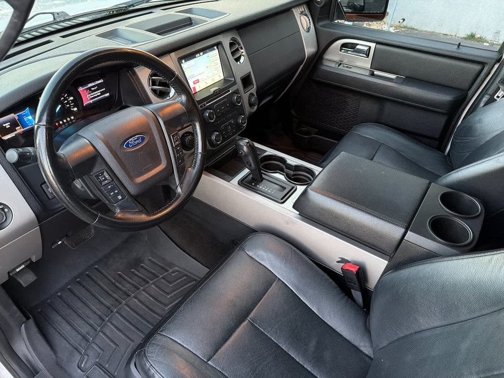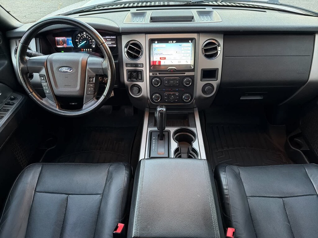 White Platinum 2017 Ford Expedition EL XLT 4WD 6-Speed Automatic EcoBoost 3.5L V6 GTDi DOHC 24V Twin Turbocharged 4WD, 110V Power Inverter, 3rd Row 60/40 PowerFold Split Seat, Ambient Lighting, Dual-Zone Electronic Air Temperature Control, Equipment Group 202A, GVWR: 7,760 lbs Payload Package, HD Radio, Heated Black Power Mirrors w/Spotter, Heated/Cooled Front Seats w/10-Way Power Passenger, Heavy-Duty Trailer Tow Package, Leather-Trimmed 1st & 2nd Row Seats w/202A, Leather-Wrapped Shift Knob, Memory Package, Power Liftgate, Power Moonroof, Power Tilt/Telescopic Steering Wheel, Remote Start, SYNC 3 Communications & Entertainment System.