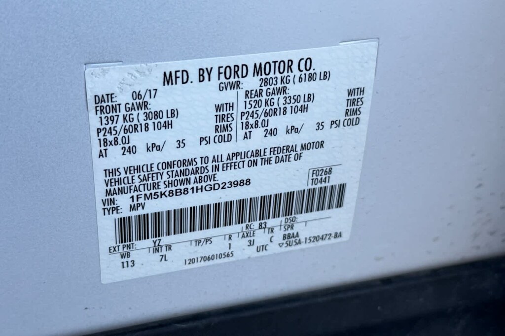 Oxford White 2017 Ford Explorer 4WD 6-Speed Automatic with Select-Shift 3.5L 6-Cylinder SMPI DOHC