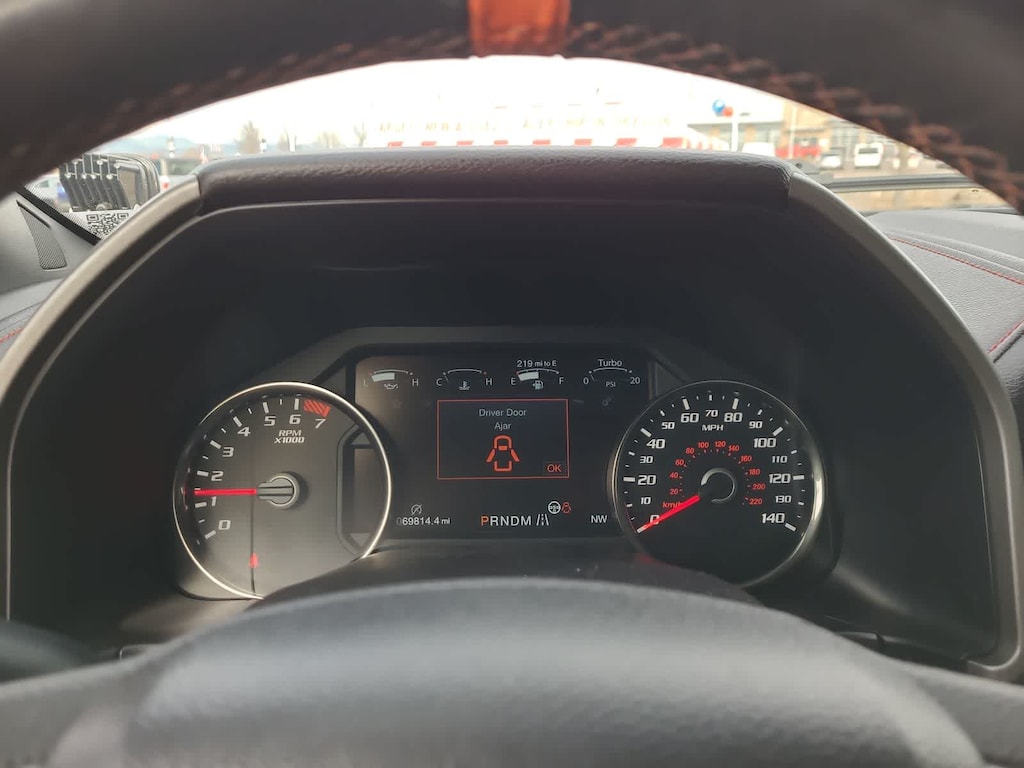 EQUIPMENT GROUP 802A LUXURY Radio: Sony Single CD w/HD & SiriusXM Satellite, SiriusXM Traffic and Travel includes a, Services are not available in Alaska and Hawaii, SiriusXM audio and data services each require a subscription sold separately, or as a package, by Sirius XM Radio Inc, If you decide to continue service after your trial, the subscription plan you choose will automatically renew thereafter and you will be charged according to your chosen payment method at then-current rates, Fees and taxes apply, To cancel you must call SiriusXM at 1-866-635-2349, See SiriusXM Customer Agreement for complete terms at www.siriusxm.com, All fees and programming subject to change, Sirius, XM and all related marks and logos are trademarks of Sirius XM Radio Inc, SYNC 3, RAPTOR TECHNOLOGY PACKAGE Auto High Beam, rain sensing wipers, Lane-Keeping System, lane departure warning, Adaptive Cruise Control w/Collision Mitigation, TWIN PANEL MOONROOF, SPRAY-IN BEDLINER (PRE-INSTALLED) Custom Accessory, TAILGATE STEP W/TAILGATE LIFT ASSIST, HEATED STEERING WHEEL, SECOND-ROW HEATED SEATS, TRANSMISSION: ELECTRONIC 10-SPEED AUTOMATIC terrain management modes: normal/baja/rock crawl/sport/mud-sand/wet-snow and tow-haul mode (STD). Ford Raptor with Shadow Black exterior and Black w/Orange Accents interior features a V6 Cylinder Engine with 450 HP at 5000 RPM*.