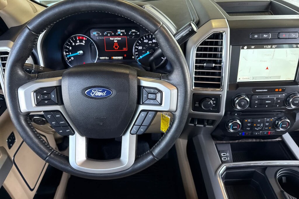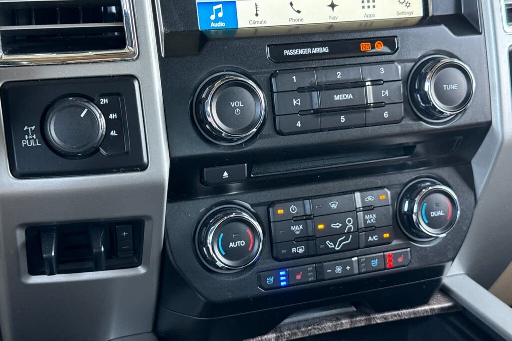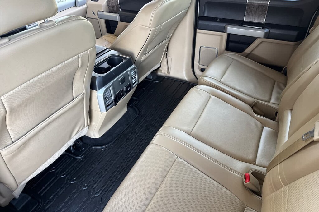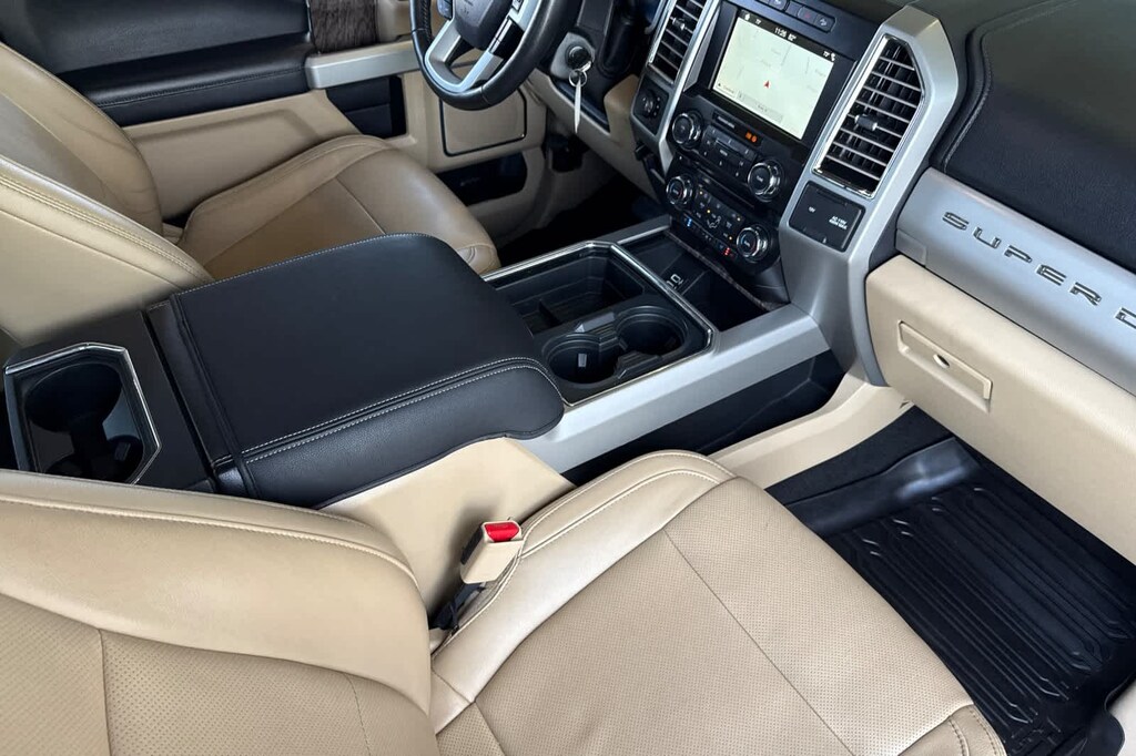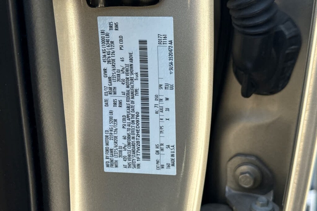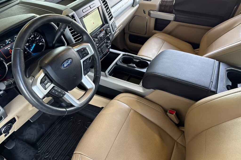 ENGINE: 6.7L 4V OHV POWER STROKE V8 TURBO DIESEL B20 4 valve OHV, manual push-button engine-exhaust braking and intelligent oil-life monitor, Extra Heavy-Duty 220 Amp Alternator, 34 Gallon Fuel Tank, 3.31 Axle Ratio, Dual 78-AH 750 CCA Batteries, WHEELS: 20 BRIGHT MACHINED CAST ALUMINUM magnetic painted pockets and bright hub covers/center ornaments, LARIAT VALUE PACKAGE Memory Power-Adjustable Pedals, Power Heated/Cooled Driver Seat w/Memory, Remote Start System, PowerScope Trailer Tow Mirrors w/Memory, EASY ENTRY®/Exit Memory Drivers Seat Feature, LED Box Lighting, LED Center High-Mounted Stop Lamp (CHMSL), Power Heated/Cooled Passenger Seat, VOICE-ACTIVATED NAVIGATION HD and SiriusXM Traffic and Travel Link, NOTE: SiriusXM Traffic and Travel Link includes a, Services are not available in Alaska and Hawaii, ELECTRONIC-LOCKING W/3.55 AXLE RATIO, TAILGATE STEP & HANDLE, 6 ANGULAR CHROME EXTENDED RUNNING BOARDS, TRANSMISSION: TORQSHIFT 6-SPEED AUTOMATIC (6R140), SelectShift. 2017 Ford Super Duty F-250 Pickup with White Gold/Caribou exterior and Camel interior features a 8 Cylinder Engine with 440 HP at 2800 RPM*.