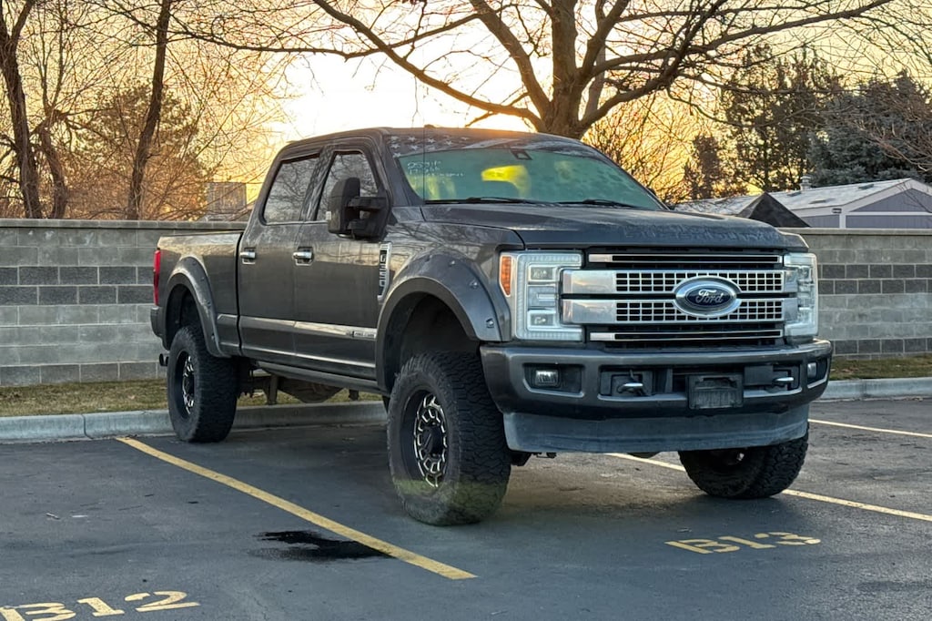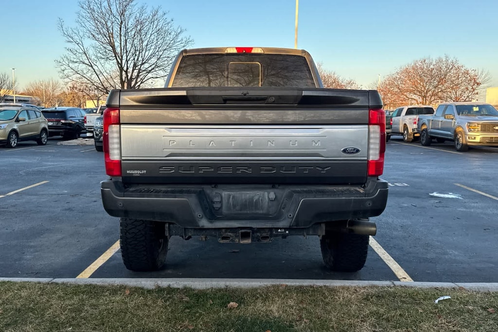 ENGINE: 6.7L POWER STROKE V8 TURBO DIESEL B20 4 valve OHV, manual push-button engine-exhaust braking and intelligent oil-life monitor, Extra Heavy-Duty 220 Amp Alternator, 3.55 Axle Ratio, 34 Gallon Fuel Tank, GVWR: 11,500 lb Payload Package, Dual 78-AH 750 CCA Batteries, PLATINUM ULTIMATE PACKAGE Adaptive Cruise Control & Collision Warning, brake support, Ultimate Trailer Tow Camera System, 360 degree camera system and trailer reverse guidance, NOTE: Does not include customer placed trailer camera, Rear CHMSL Camera, Display in center stack screen, LED Center High-Mounted Stop Lamp (CHMSL) w/cargo light and rear video camera, Lane-Keeping Alert, Twin Panel Power Moonroof, map lights and moonroof switches, ELECTRONIC-LOCKING W/3.55 AXLE RATIO, TRANSMISSION: TORQSHIFT 6-SPEED AUTOMATIC (6R140), SelectShift. 2017 Ford Super Duty F-350 SRW Pickup with Magnetic exterior and Black interior features a 8 Cylinder Engine with 440 HP at 2800 RPM*.