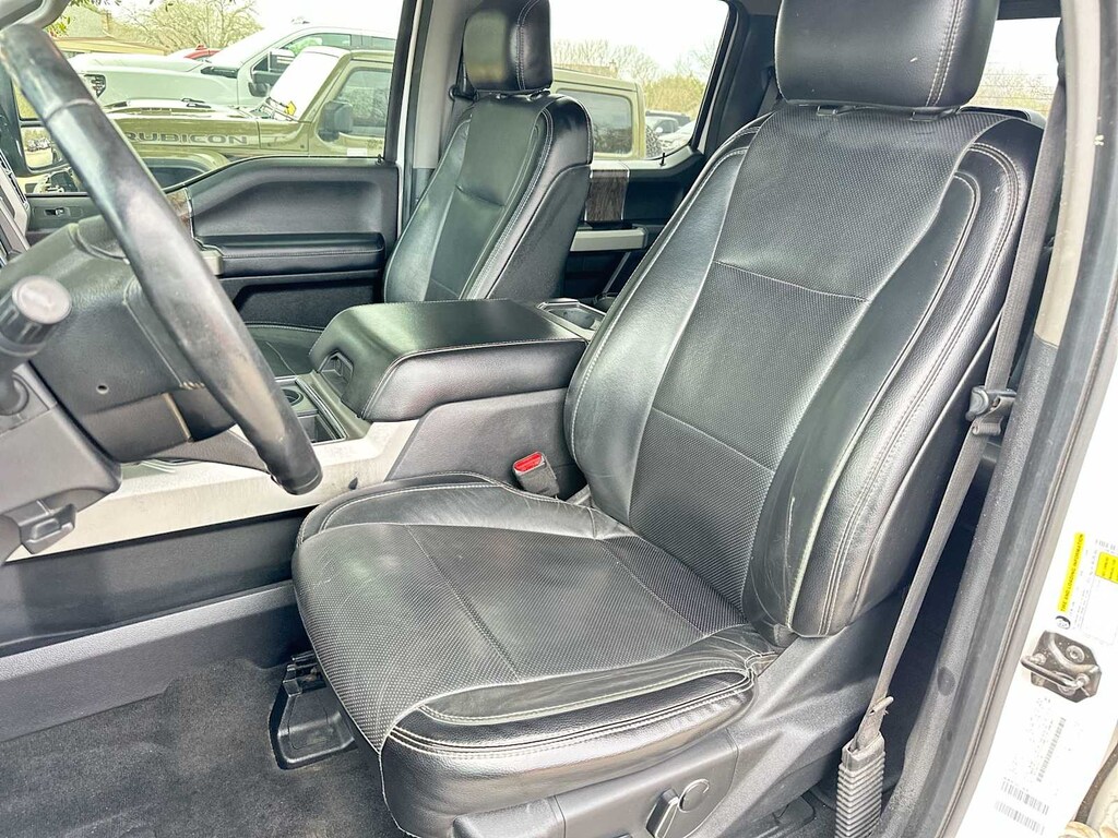 LARIAT VALUE PACKAGE Memory Power-Adjustable Pedals, Power Heated/Cooled Driver Seat w/Memory, Remote Start System, PowerScope Trailer Tow Mirrors w/Memory, EASY ENTRY®/Exit Memory Drivers Seat Feature, LED Box Lighting, LED Center High-Mounted Stop Lamp (CHMSL), Power Heated/Cooled Passenger Seat, 5 CHROME TUBULAR STEP BAR, VOICE-ACTIVATED NAVIGATION HD and SiriusXM Traffic and Travel Link, Note: SiriusXM Traffic and Travel Link includes a, Services are not available in Alaska and Hawaii, ELECTRONIC-LOCKING W/3.73 AXLE RATIO, ENGINE: 6.2L 2-VALVE SOHC EFI NA V8 FLEX-FUEL (STD). Ford Lariat with White Platinum Metallic Tri-Coat exterior and Black interior features a 8 Cylinder Engine with 385 HP at 5750 RPM*.