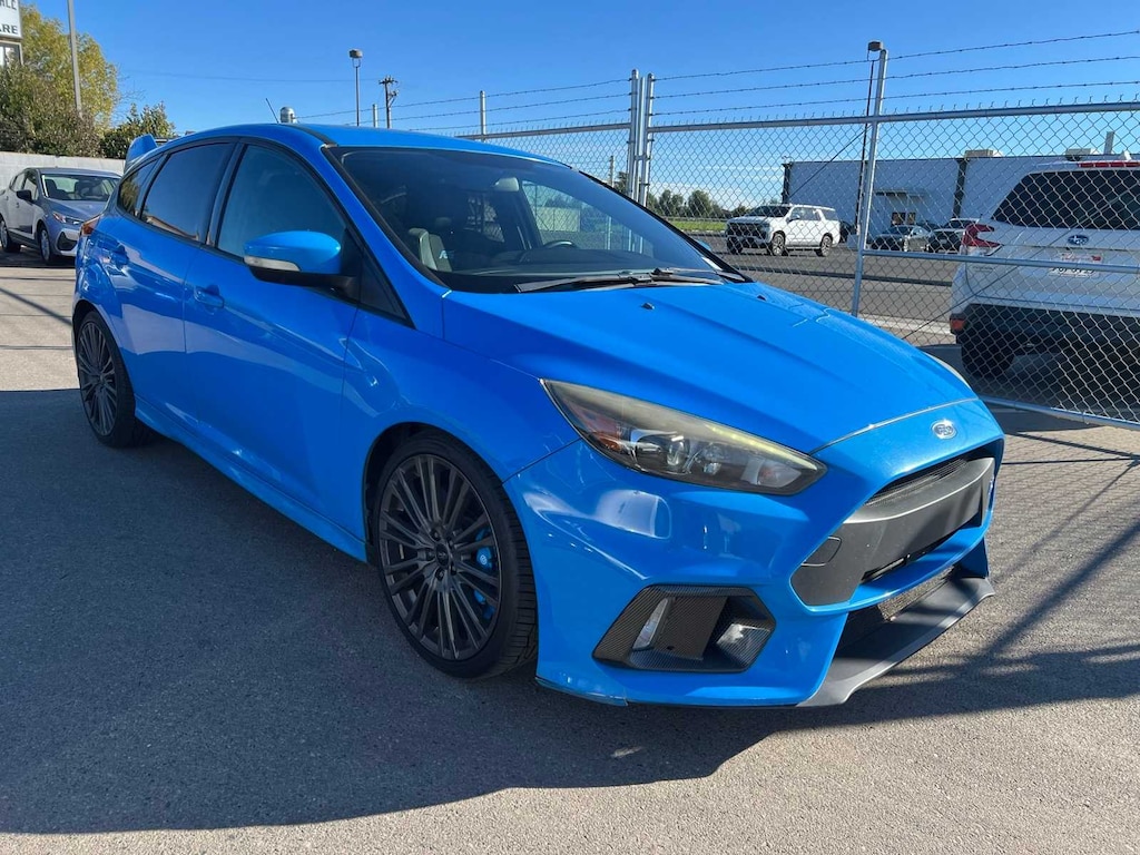 Blue 2017 Ford Focus RS AWD 6-Speed Manual 2.3L GTDI FRESH ENGINE and CABIN FILTERS, FRESH OIL CHANGE, Safety Inspected, DETAILED INTERIOR AND EXTERIOR FOR DELIVERY, CERTIFIED BY CARFAX - NO ACCIDENTS, Multi Point Safety and Mechanical Inspection Performed by Certified Technician, 10 Speakers, 4-Wheel Disc Brakes, ABS brakes, Air Conditioning, AM/FM radio: SiriusXM, Automatic temperature control, Brake assist, Compass, Electronic Stability Control, Emergency communication system: 911 Assist, Equipment Group 600A, Exterior Parking Camera Rear, Four wheel independent suspension, Front anti-roll bar, Front Bucket Seats, Front dual zone A/C, Fully automatic headlights, Heated 3 Point Steering Wheel, Heated Front-Seats, Heated Mirrors, High-Intensity Discharge Headlights, Leather Recaro Seats w/Miko Dinamica Inserts, Leather Shift Knob, Leather steering wheel, Outside temperature display, Partial Leather Recaro Seats, Power door mirrors, Power Moonroof, Power steering, Power windows, Radio data system, Radio: Sony Audio System w/10 Speakers, Rear anti-roll bar, Remote keyless entry, RS2, SiriusXM Traffic & Travel Link, Speed control, Split folding rear seat, Spoiler, Steering wheel mounted audio controls, SYNC 3 Communications & Entertainment System, Telescoping steering wheel, Tilt steering wheel, Traction control, Turn signal indicator mirrors, Voice-Activated Touch-Screen Navigation System.