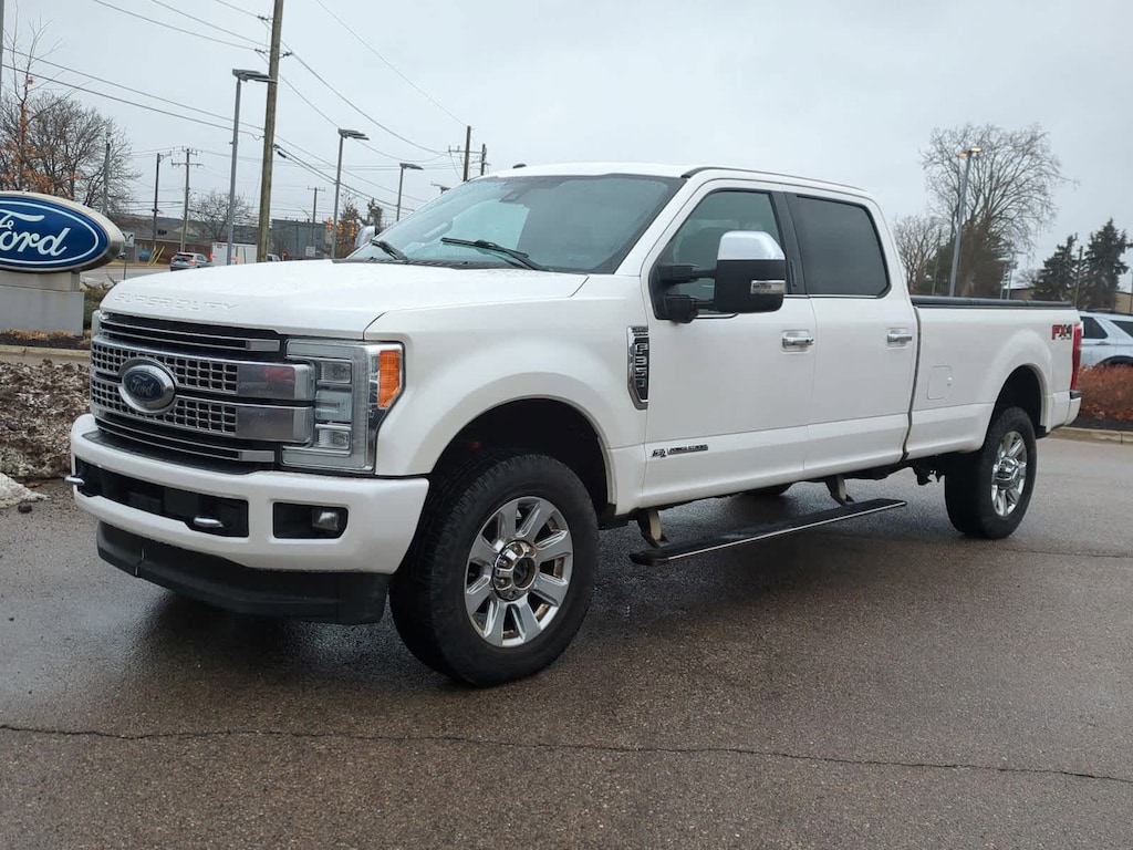 2017 Ford F-350SD Platinum White Platinum 4WD F-350SD Platinum 8 Bed, 4D Crew Cab, Power Stroke 6.7L V8 DI 32V OHV Turbodiesel, 4WD, White Platinum, Adaptive Cruise Control & Collision Warning, Colored Front & Rear Rancho Branded Shocks, Electronic-Locking w/3.55 Axle Ratio, FX4 Off-Road Package, GVWR: 11,500 lb Payload Package, Hill Descent Control, Lane-Keeping Alert, Navigation System, Order Code 713A, Platinum Ultimate Package, Rear CHMSL Camera, Twin Panel Power Moonroof, Ultimate Trailer Tow Camera System, Unique FX4 Off-Road Box Decal.