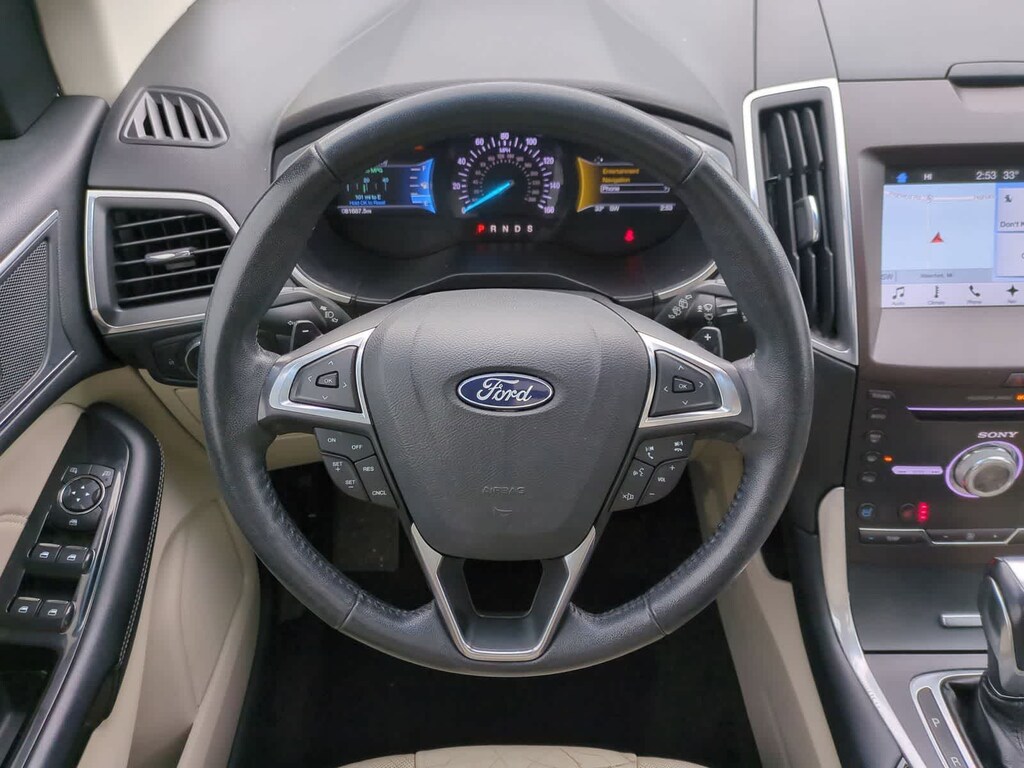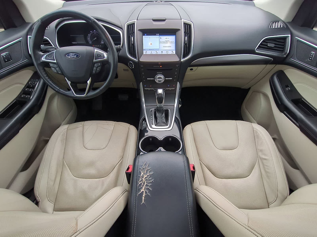 Powered by a robust 3.5L V6 Ti-VCT engine paired with a smooth 6-Speed Automatic transmission, this Edge Titanium delivers an impressive 17 city/26 highway MPG, ensuring efficiency and performance. Step inside and be welcomed by a luxurious leather-trimmed interior, complete with a host of advanced technologies that elevate your driving experience.