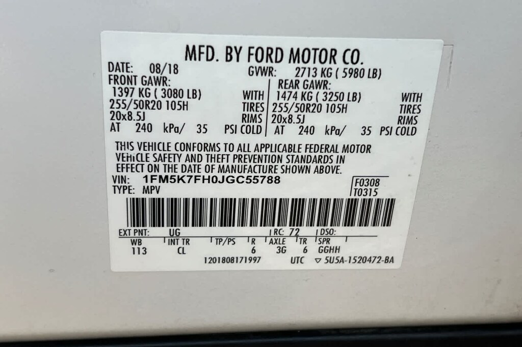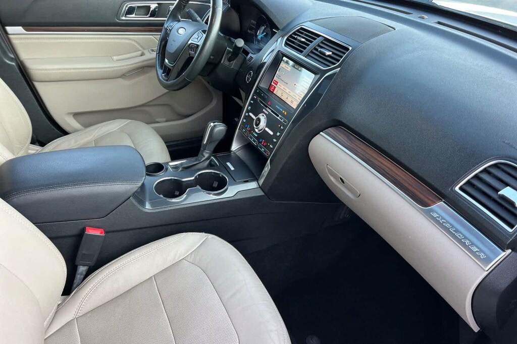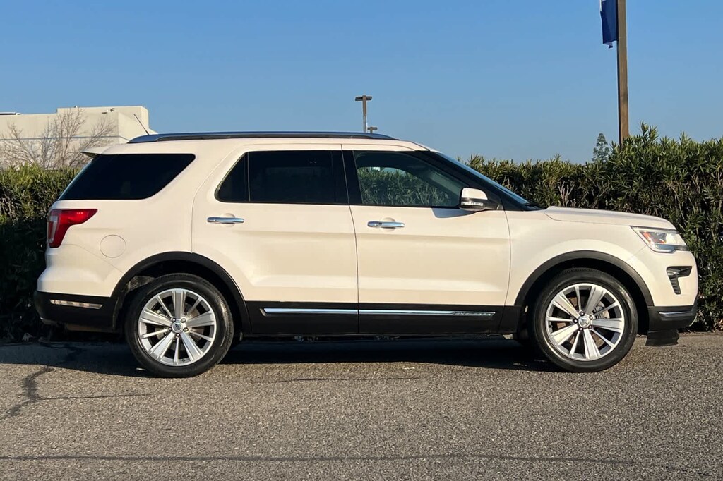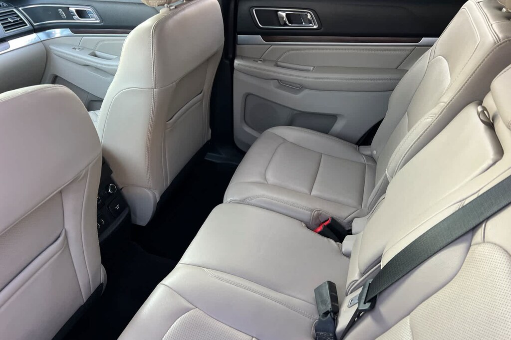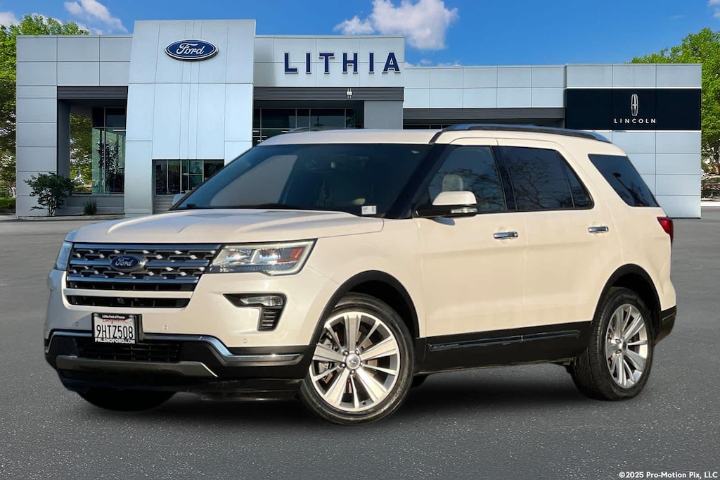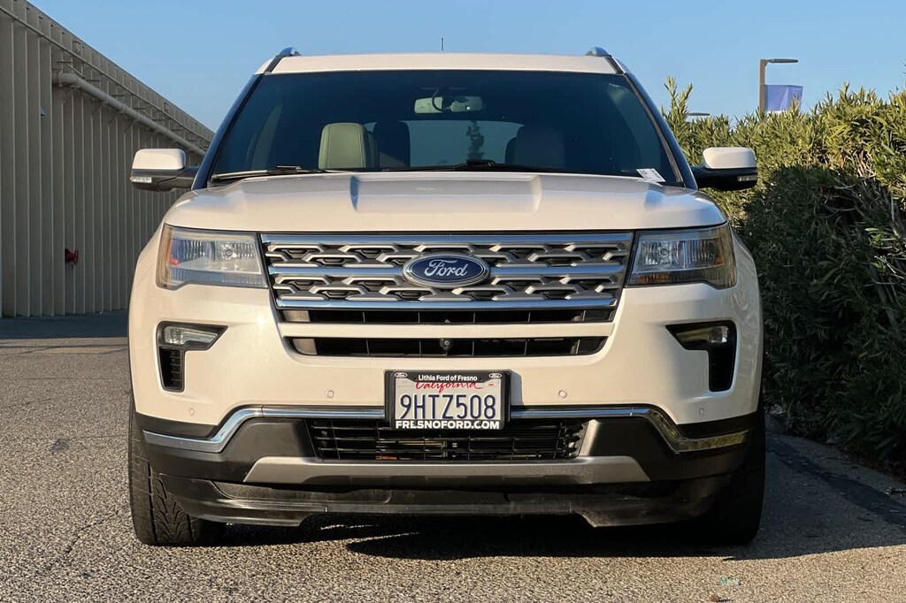 Lithia Ford and Lincoln of Fresno is pleased to offer this White Platinum Metallic Tri-Coat 2018 Ford Explorer Limited for purchase, this vehicle is well equipped with many features including: Equipment Group 300A, 12 Speakers, 3.39 Non-Limited-Slip Axle Ratio, 3rd row seats: split-bench, 4-Wheel Disc Brakes, ABS brakes, Air Conditioning, Alloy wheels, AM/FM radio: SiriusXM, AppLink/Apple CarPlay and Android Auto, Auto tilt-away steering wheel, Auto-dimming Rear-View mirror, Automatic temperature control, Brake assist, Bumpers: body-color, CD player, Compass, Delay-off headlights, Driver door bin, Driver vanity mirror, Dual front impact airbags, Dual front side impact airbags, Electronic Stability Control, Emergency communication system: SYNC 3 911 Assist, Exterior Parking Camera Rear, Four wheel independent suspension, Front anti-roll bar, Front Bucket Seats, Front Center Armrest, Front dual zone A/C, Front fog lights, Front reading lights, Fully automatic headlights, Garage door transmitter, Heated door mirrors, Heated front seats, Heated rear seats, Heated steering wheel, Illuminated entry, Knee airbag, Leather steering wheel, Low tire pressure warning, Memory seat, Navigation System, Occupant sensing airbag, Outside temperature display, Overhead airbag, Overhead console, Panic alarm, Passenger door bin, Passenger vanity mirror, Perforated Leather Heated/Cooled Bucket Seats, Power door mirrors, Power driver seat, Power Liftgate, Power passenger seat, Power steering, Power windows, Premium audio system: Sony, Radio data system, Radio: Sony Audio System w/CD Player, Rear air conditioning, Rear anti-roll bar, Rear reading lights, Rear seat center armrest, Rear window defroster, Rear window wiper, Remote keyless entry, Roof rack: rails only, Security system, Speed control, Speed-sensing steering, Speed-Sensitive Wipers, Split folding rear seat, Spoiler, Steering wheel memory, Steering wheel mounted audio controls, SYNC 3 Communications & Entertainment System, Tachometer, Telescoping steering wheel, Tilt steering wheel, Traction control, Trip computer, Turn signal indicator mirrors, Twin Panel Moonroof, Variably intermittent wipers, Ventilated front seats, and Wheels: 20 Premium Luster Nickel-Painted Aluminum. FWD 2.3L I4 EcoBoost 6-Speed Automatic with Select-Shift Limited