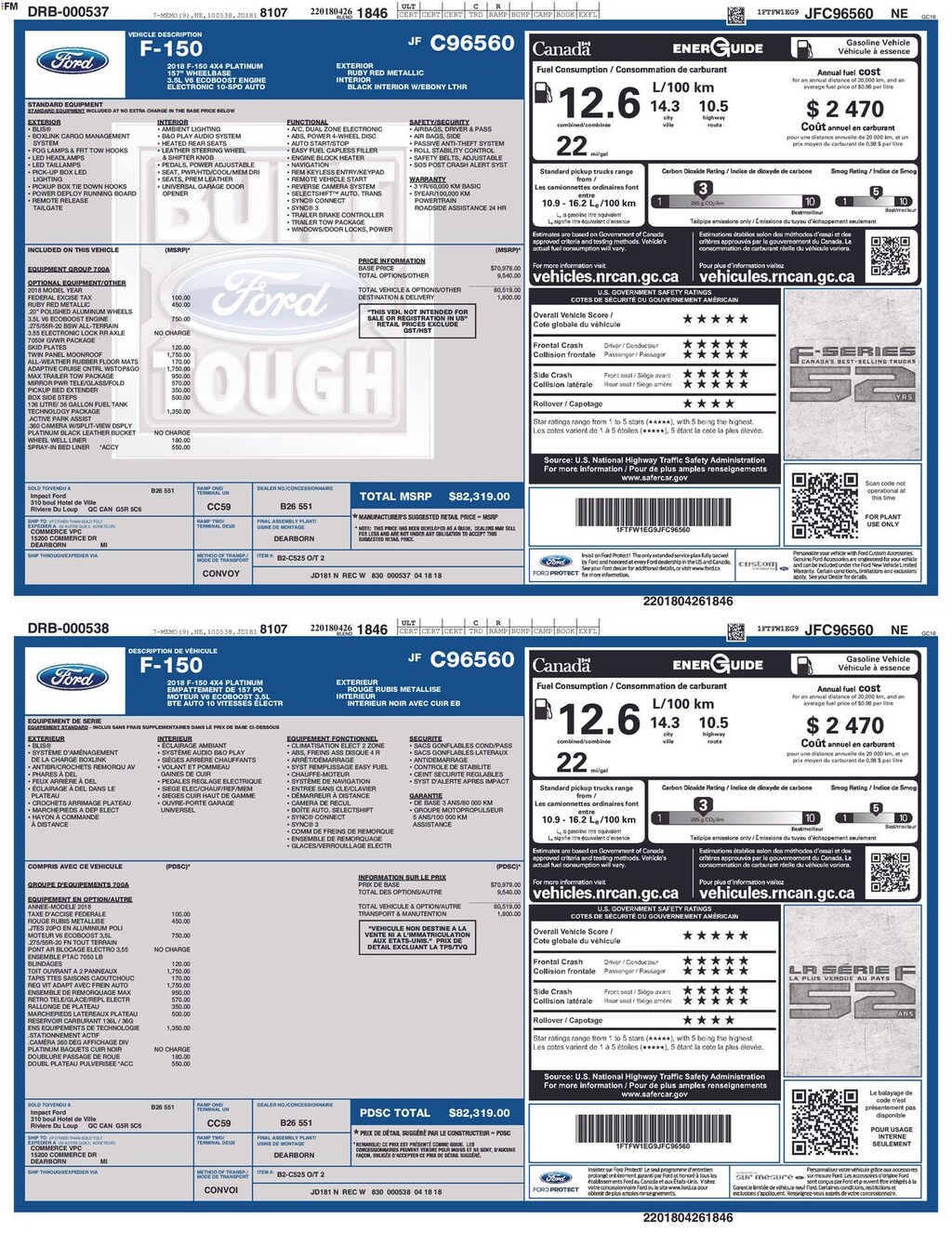 Recent Arrival! Clean CARFAX. 2018 Ford F-150 Platinum Is nicely equipped with Technology Package (Active Park Assist and Lane-Keeping System), GVWR: 7,050 lbs Payload Package, 4WD, Twin Panel Moonroof, 10 Speakers, 20" Polished Aluminum Wheels, 3.31 Axle Ratio, 4-Wheel Disc Brakes, ABS brakes, Adjustable pedals, Air Conditioning, Alloy wheels, AM/FM radio: SiriusXM, AppLink/Apple CarPlay and Android Auto, Auto High-beam Headlights, Auto tilt-away steering wheel, Auto-dimming door mirrors, Auto-dimming Rear-View mirror, Automatic temperature control, Black Unique Multi-Contour Leather Bucket Seats, Brake assist, Bumpers: body-color, CD player, Class IV Trailer Hitch Receiver, Compass, Delay-off headlights, Driver door bin, Driver vanity mirror, Dual front impact airbags, Dual front side impact airbags, Electronic Stability Control, Emergency communication system: SYNC 3 911 Assist, Exterior Parking Camera Rear, Front anti-roll bar, Front Bucket Seats, Front Center Armrest, Front dual zone A/C, Front fog lights, Front reading lights, Front wheel independent suspension, Fully automatic headlights, Garage door transmitter, Genuine wood door panel insert, Heated door mirrors, Heated front seats, Heated rear seats, Heated steering wheel, Illuminated entry, Integrated Trailer Brake Controller, Low tire pressure warning, Memory seat, Navigation System, Occupant sensing airbag, Outside temperature display, Overhead airbag, Overhead console, Panic alarm, Passenger door bin, Passenger vanity mirror, Pedal memory, Power door mirrors, Power driver seat, Power passenger seat, Power steering, Power windows, Radio data system, Radio: B&O Play Premium Audio System, Rain sensing wipers, Rear Parking Sensors, Rear reading lights, Rear seat center armrest, Rear step bumper, Rear window defroster, Remote keyless entry, Security system, Speed control, Speed-sensing steering, Split folding rear seat, Steering wheel memory, Steering wheel mounted audio controls, SYNC 3, Tachometer, Telescoping steering wheel, Tilt steering wheel, Traction control, Trip computer, Turn signal indicator mirrors, Variably intermittent wipers, Ventilated front seats, Voice-Activated Touchscreen Navigation System, and Voltmeter.
