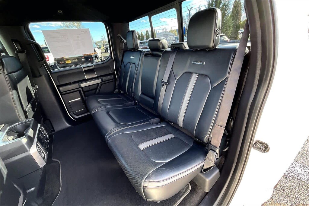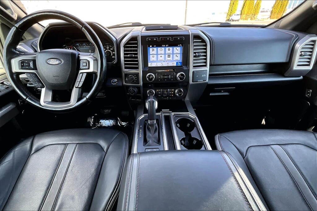 TECHNOLOGY PACKAGE Lane-Keeping System, 360 camera w/split-view display and dynamic hitch assist, Active Park Assist, ENGINE: 3.5L V6 ECOBOOST auto start-stop technology, GVWR: 6,750 lbs Payload Package, TRANSMISSION: ELECTRONIC 10-SPEED AUTOMATIC selectable drive modes: normal/tow-haul/snow-wet/EcoSelect/sport (STD). Ford Platinum with White Platinum Metallic Tri-Coat exterior and Black interior features a V6 Cylinder Engine with 395 HP at 5750 RPM*.