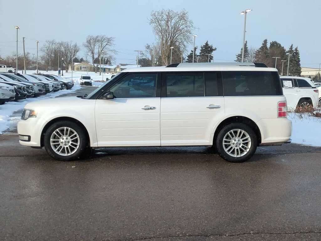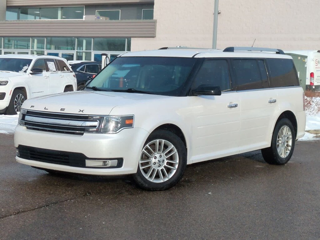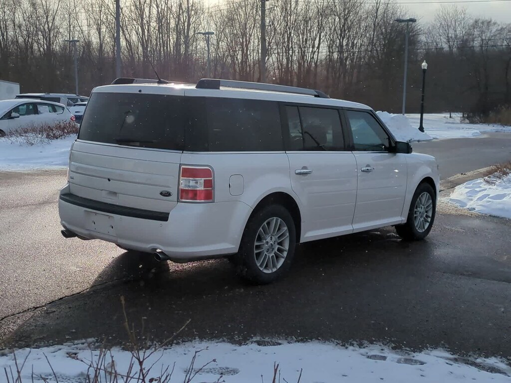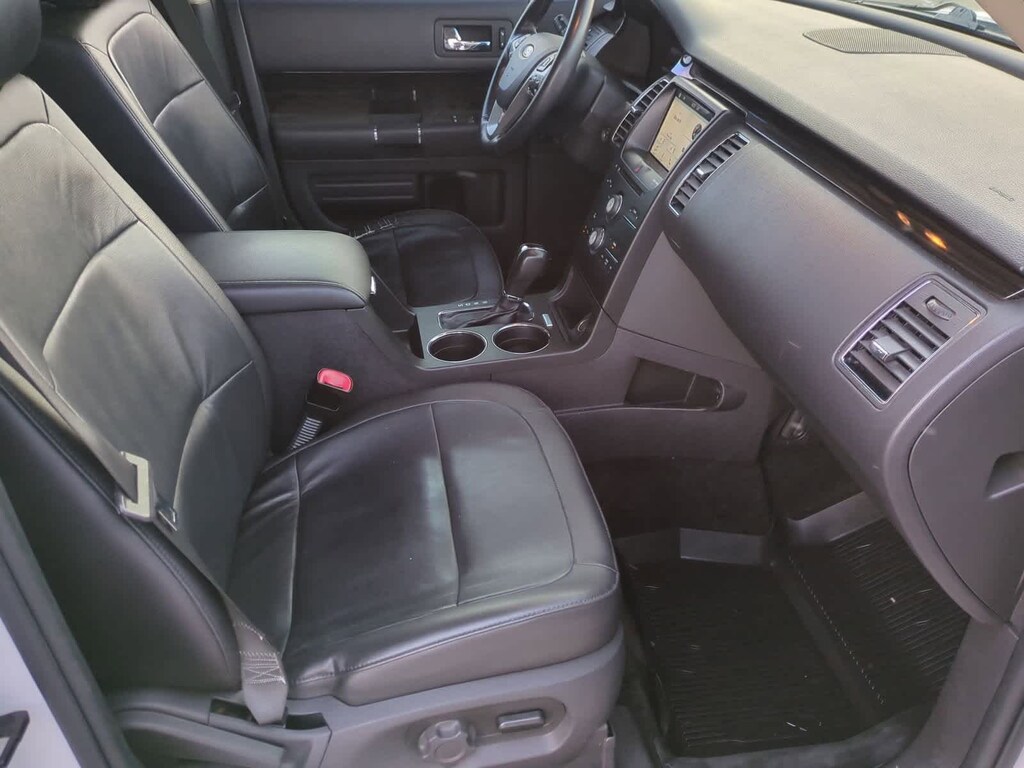 2018 Ford Flex SEL White Platinum FWD 3.5L V6 Ti-VCT, White Platinum, Adjustable Pedals w/Memory, BLIS Blind Spot Information System, Equipment Group 202A, Exterior Mirrors w/Security Approach Lamps, Leather-Trimmed Heated Bucket Seats, Memory Drivers Seat & Exterior Mirrors, Navigation System, Power Converter 110V Outlet, Power Liftgate, Premium 7-Speaker Audio System.