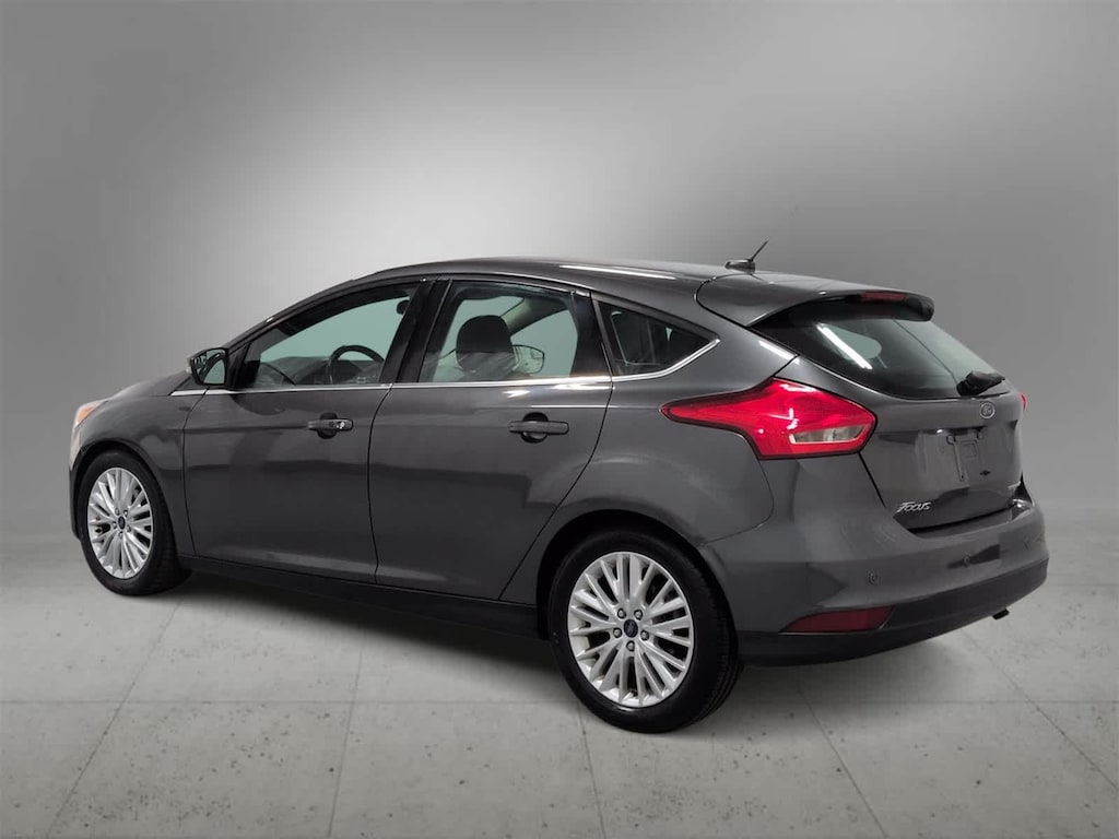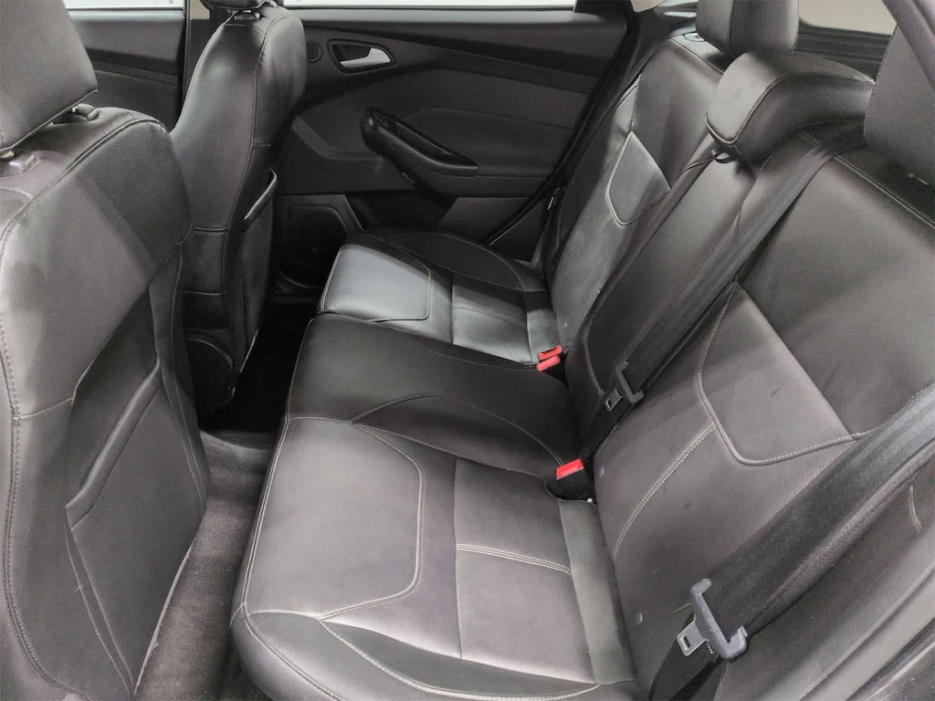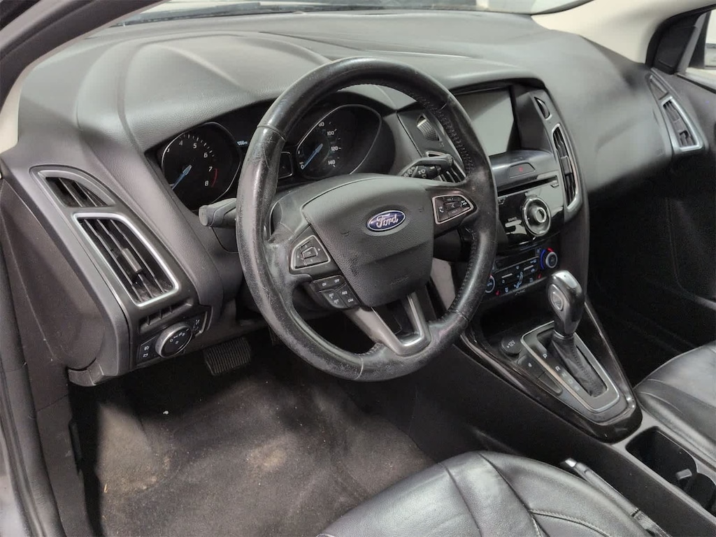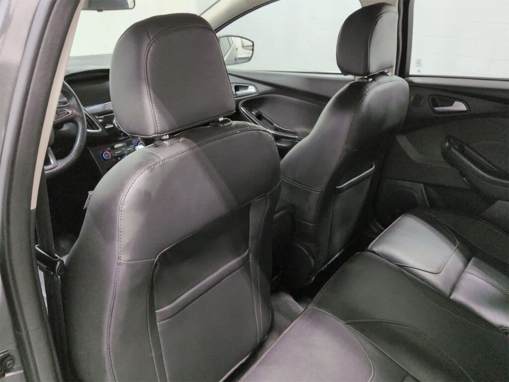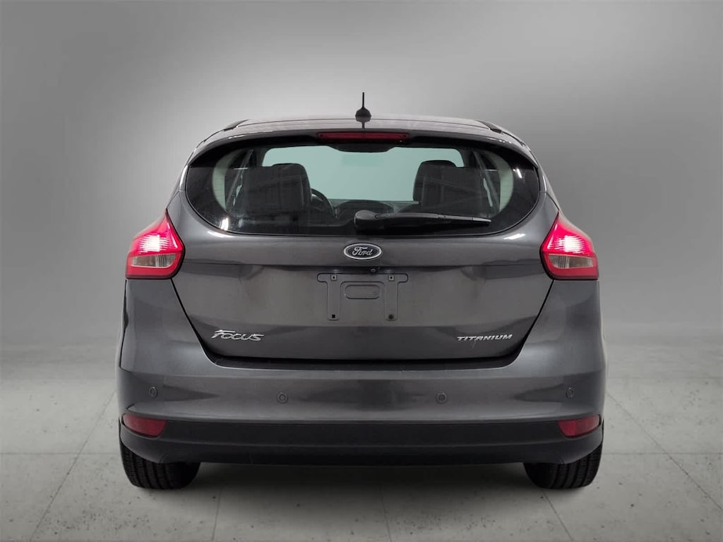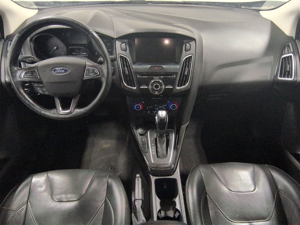 Focus Titanium is nicely equipped with 10 Speakers, 17 Polished Aluminum Wheels, 4-Wheel Disc Brakes, ABS brakes, Air Conditioning, Alloy wheels, AM/FM radio: SiriusXM, AppLink/Apple CarPlay and Android Auto, Automatic temperature control, Brake assist, Bumpers: body-color, CD player, Compass, Delay-off headlights, Driver door bin, Driver vanity mirror, Dual front impact airbags, Dual front side impact airbags, Electronic Stability Control, Emergency communication system: SYNC 3 911 Assist, Exterior Parking Camera Rear, Four wheel independent suspension, Front anti-roll bar, Front Bucket Seats, Front Center Armrest, Front dual zone A/C, Front fog lights, Front reading lights, Fully automatic headlights, Heated door mirrors, Heated front seats, Heated Leather-Trimmed Sport Front Bucket Seats, Heated steering wheel, Illuminated entry, Knee airbag, Leather Shift Knob, Leather steering wheel, Low tire pressure warning, Occupant sensing airbag, Outside temperature display, Overhead airbag, Overhead console, Panic alarm, Passenger door bin, Passenger vanity mirror, Power door mirrors, Power driver seat, Power moonroof, Power steering, Power windows, Radio data system, Radio: Sony AM/FM Single-CD/MP3-Capable, Rear anti-roll bar, Rear Parking Sensors, Rear seat center armrest, Rear window defroster, Rear window wiper, Remote keyless entry, Security system, Speed control, Split folding rear seat, Spoiler, Steering wheel mounted audio controls, SYNC 3 Communications & Entertainment System, Tachometer, Telescoping steering wheel, Tilt steering wheel, Traction control, Trip computer, Turn signal indicator mirrors, and Variably intermittent wipers.