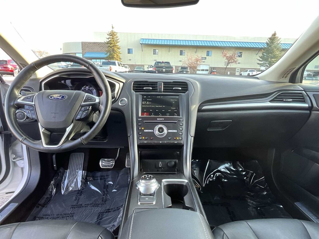 POWER MOONROOF Universal Garage Door Opener, WHEELS: 19 MACHINED-FACED ALUMINUM magnetic-painted pockets, Tires: P235/40R19 Performance, COOLED DRIVER AND PASSENGER SEATS perforated leather, TRANSMISSION: 6-SPEED AUTOMATIC W/PADDLE SHIFTERS SelectShift (STD), ENGINE: 2.0L ECOBOOST (STD). Ford Titanium with White Platinum Metallic Tri-Coat exterior and Ebony interior features a 4 Cylinder Engine with 231 HP at 5500 RPM*.