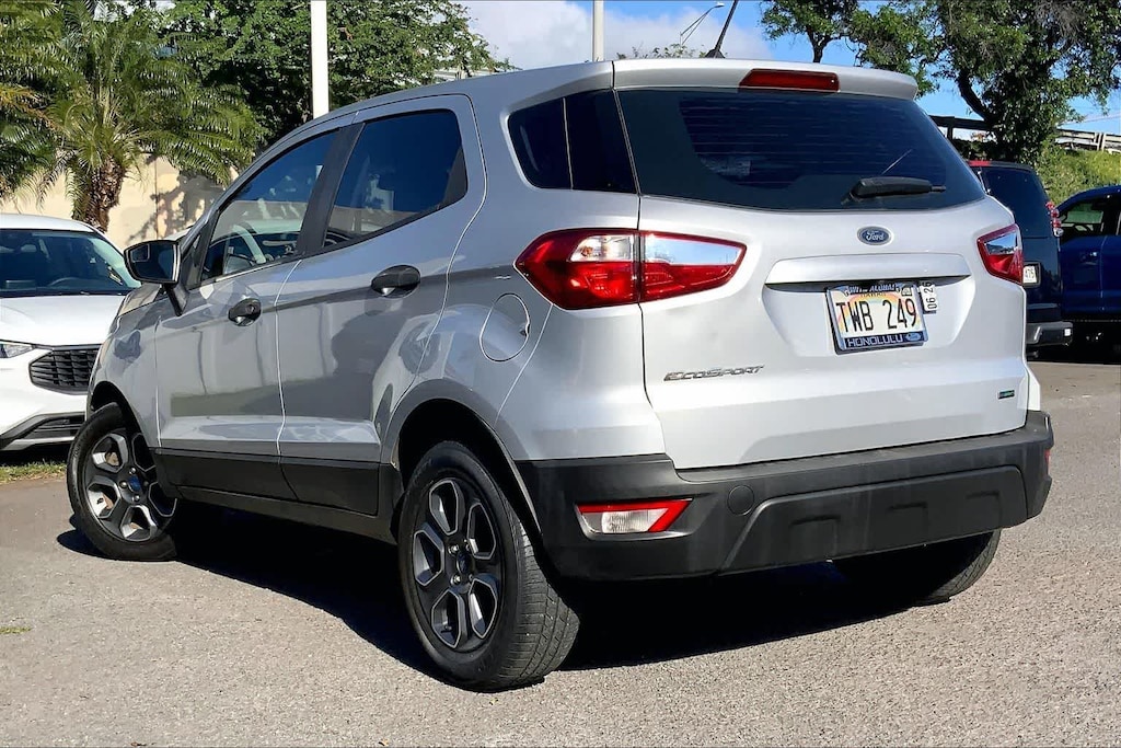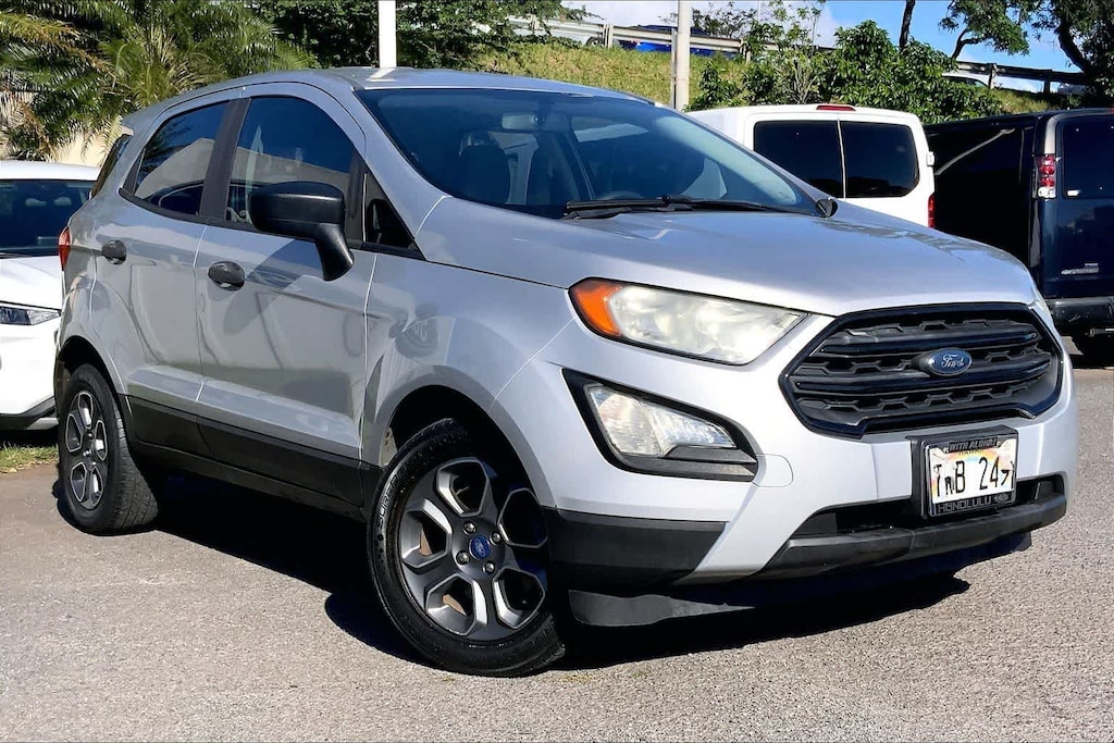 HONOLULU FORD! 808-532-1700, *DONT WAIT! CALL NOW!!, FINANCING AVAILABLE, GUARANTEED APPROVALS! LOW PAYMENTS! GREAT INTEREST RATES!, ***FORD CERTIFIED VEHICLE!! 172 POINT INSPECTION, OIL CHANGE, NEW WIPERS, NEW AIR FILTERS, FULL DET, WE SHIP TO NEIGHBOR ISLANDS!, 172 POINT INSPECTION BY FACTORY TRAINED TECHNICIANS!, APPLE CAR PLAY/ANDROID AUTO, BLUETOOTH HANDS FREE CALLING, ONE OWNER!!, ACCIDENT FREE CARFAX!, EXTRA CLEAN, WELL TAKEN CARE OF, EXCELLENT FUEL ECONOMY, EXCELLENT CONDITION!, EXCELLENT SERVICE HISTORY!!, READY FOR YOU TO DRIVE HOME TODAY!, ADAPTIVE CRUISE CONTROL, UPGRADED WHEELS, TOUCH SCREEN, 3.44 Axle Ratio, 4-Wheel Disc Brakes, 6 Speakers, ABS brakes, Air Conditioning, Alloy wheels, AM/FM radio, Brake assist, Bumpers: body-color, Cloth Front Bucket Seats, Compass, Delay-off headlights, Driver door bin, Driver vanity mirror, Dual front impact airbags, Dual front side impact airbags, Electronic Stability Control, Emergency communication system: 911 Assist, Equipment Group 100A, Exterior Parking Camera Rear, Front anti-roll bar, Front Bucket Seats, Front Center Armrest, Front reading lights, Front wheel independent suspension, Fully automatic headlights, Illuminated entry, Knee airbag, Low tire pressure warning, Occupant sensing airbag, Outside temperature display, Overhead airbag, Overhead console, Panic alarm, Passenger door bin, Passenger vanity mirror, Power door mirrors, Power steering, Power windows, Radio data system, Radio: AM/FM Stereo w/MP3 Capable, Rear seat center armrest, Rear side impact airbag, Rear window defroster, Rear window wiper, Remote keyless entry, Speed control, Speed-sensing steering, Split folding rear seat, Steering wheel mounted audio controls, SYNC Communications & Entertainment System, Tachometer, Telescoping steering wheel, Tilt steering wheel, Tire Inflator & Sealant Kit, Traction control, Trip computer, Variably intermittent wipers, Wheels: 16 Low-Gloss Magnetic-Painted. Recent Arrival! CARFAX One-Owner. Moondust 2019 Ford EcoSport S FWD 6-Speed Automatic EcoBoost 1.0L I3 GTDi DOHC Turbocharged VCT
