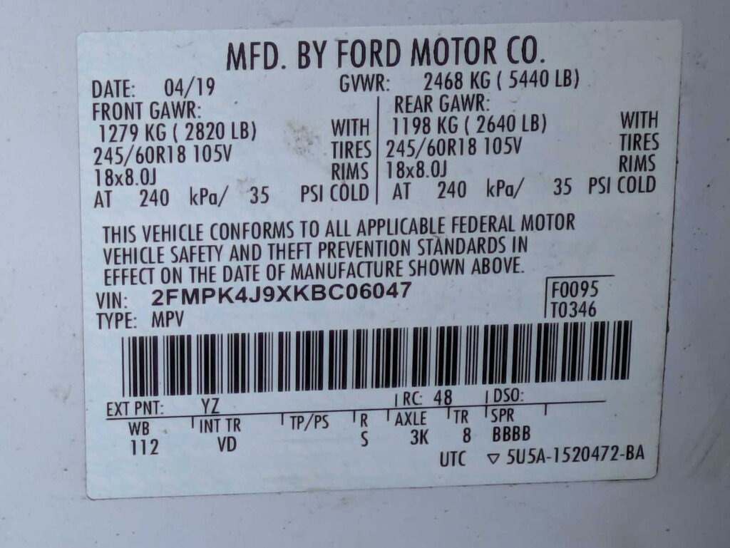 Oxford White 2019 Ford Edge SEL AWD 8-Speed Automatic EcoBoost 2.0L I4 GTDi DOHC Turbocharged VCT