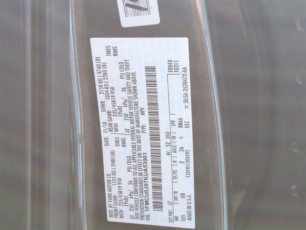 ENGINE: 2.0L ECOBOOST auto start-stop technology (STD). 2019 Ford Escape with Magnetic exterior and Charcoal Black interior features a 4 Cylinder Engine with 245 HP at 5500 RPM*.