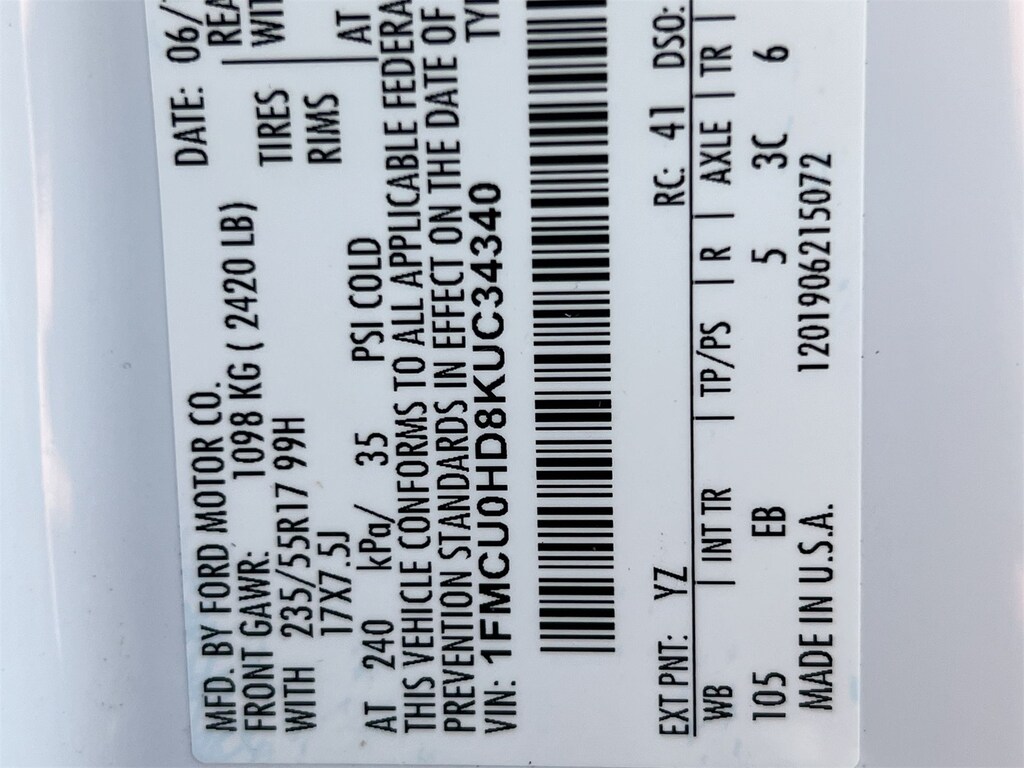 Clean CARFAX. 2019 Ford Escape 4D Sport Utility SEL Oxford White FWD 1.5L EcoBoost 6-Speed Automatic