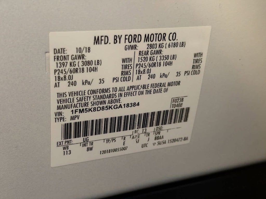 White Platinum Clearcoat Metallic 2019 Ford Explorer XLT 4D Sport Utility 4WD 6-Speed Automatic with Select-Shift 3.5L 6-Cylinder SMPI DOHC