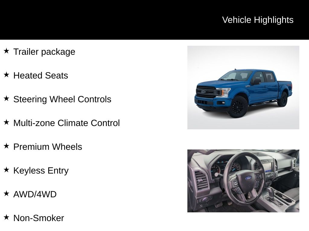**Super Clean and Well Taken Care Of**, Backup Camera, Trailer Hitch, Bluetooth, Hands-Free, Trailer package, Heated Seats, Steering Wheel Controls, Multi-zone Climate Control, Premium Wheels, Keyless Entry, AWD/4WD, Non-Smoker, All Maintenance Upto date!!, Fully Reconditioned and Professionally Detailed!, Must See and Drive to appreciate this great value!!, 4WD, 10-Way Power Driver & Passenger Seats, 2-Bar Style Grille w/2 Minor Bars Painted Dark, 4.2" Productivity Screen in Instrument Cluster, 4x4 FX4 Off-Road Bodyside Decal, Accent-Color Step Bars, Body-Color Door & Tailgate Handles, Body-Color Front & Rear Bumpers, Box Side Decals, Cloth 40/20/40 Front Seat, Equipment Group 302A Luxury, Fixed Backlight w/Privacy Glass, FX4 Off-Road Package, Heated Front Seats, Hill Descent Control, Leather-Wrapped Steering Wheel, Off-Road Tuned Front Shock Absorbers, Power Glass Heated Sideview Mirrors, Power-Adjustable Pedals, Rear Under-Seat Storage, Rear Window Defroster, Remote Start System, SiriusXM Radio, Tray Style Floor Liner, Wheels: 18" 6-Spoke Machined-Aluminum, XLT Sport Appearance Package. Priced below KBB Fair Purchase Price! Odometer is 15673 miles below market average! 19/24 City/Highway MPG