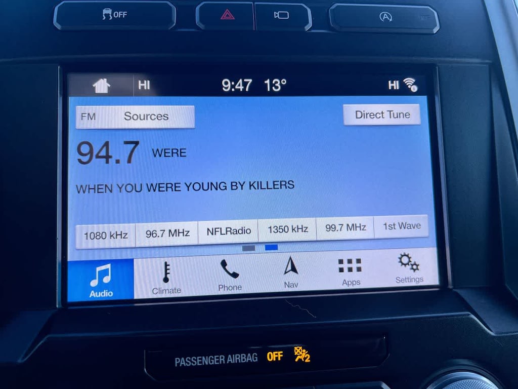 EQUIPMENT GROUP 502A LUXURY Rain-Sensing Wipers, Power Tilt/Telescoping Steering Column w/Memory, Windshield Wiper De-Icer, Remote Start System w/Remote Tailgate Release, Lariat Chrome Appearance Package, 2 chrome front tow hooks, Single-Tip Chrome Exhaust, Chrome Angular Step Bars, Chrome Door & Tailgate Handles w/Body-Color Bezel, Wheels: 18 Chrome-Like PVD, Chrome 2-Bar Grille w/4 Minor Bars, painted silver surround and background mesh, Chrome Skull Caps on Exterior Mirrors, LED Sideview Mirror Spotlights, high-intensity LED security approach lamps, Radio: B&O Sound System by Bang & Olufsen, HD Radio, SiriusXM radio, 10 speakers and subwoofer, Note: When ordered w/voice-activated navigation system (50N) SiriusXM Traffic and Travel Link includes a, SiriusXM, MAX TRAILER TOW PACKAGE max towing capability up to TBD and upgraded rear bumper, Pro Trailer Backup Assist, Integrated Trailer Brake Controller, Electronic Locking w/3.55 Axle Ratio, Extended Range 36 Gallon Fuel Tank, Engine Oil Cooler, Upgraded Front Stabilizer Bar, ADAPTIVE CRUISE CONTROL stop-and-go and pedestrian detection, TECHNOLOGY PACKAGE Lane-Keeping System, 360 camera w/split-view display and dynamic hitch assist, Active Park Assist, POWER-DEPLOYABLE RUNNING BOARDS Replaces step bar, ENGINE: 3.5L V6 ECOBOOST auto start-stop technology, TOUGH BED SPRAY-IN BEDLINER, TAILGATE STEP W/TAILGATE LIFT ASSIST, LARIAT SPORT APPEARANCE PACKAGE unique interior finish, Box Side Decals, Single-Tip Chrome Exhaust, Wheels: 18 6-Spoke Machined-Aluminum, magnetic painted pockets, Accent-Color Angular Step Bars, 2-Bar Body-Color Grille w/4 Minor Bars, black surround and black mesh, Body-Color Front & Rear Bumpers, TRANSMISSION: ELECTRONIC 10-SPEED AUTOMATIC selectable drive modes: normal/tow-haul/snow-wet/EcoSelect/sport (STD), TWIN PANEL MOONROOF. Ford LARIAT with Magma Red exterior and Black interior features a V6 Cylinder Engine with 395 HP at 5750 RPM*.