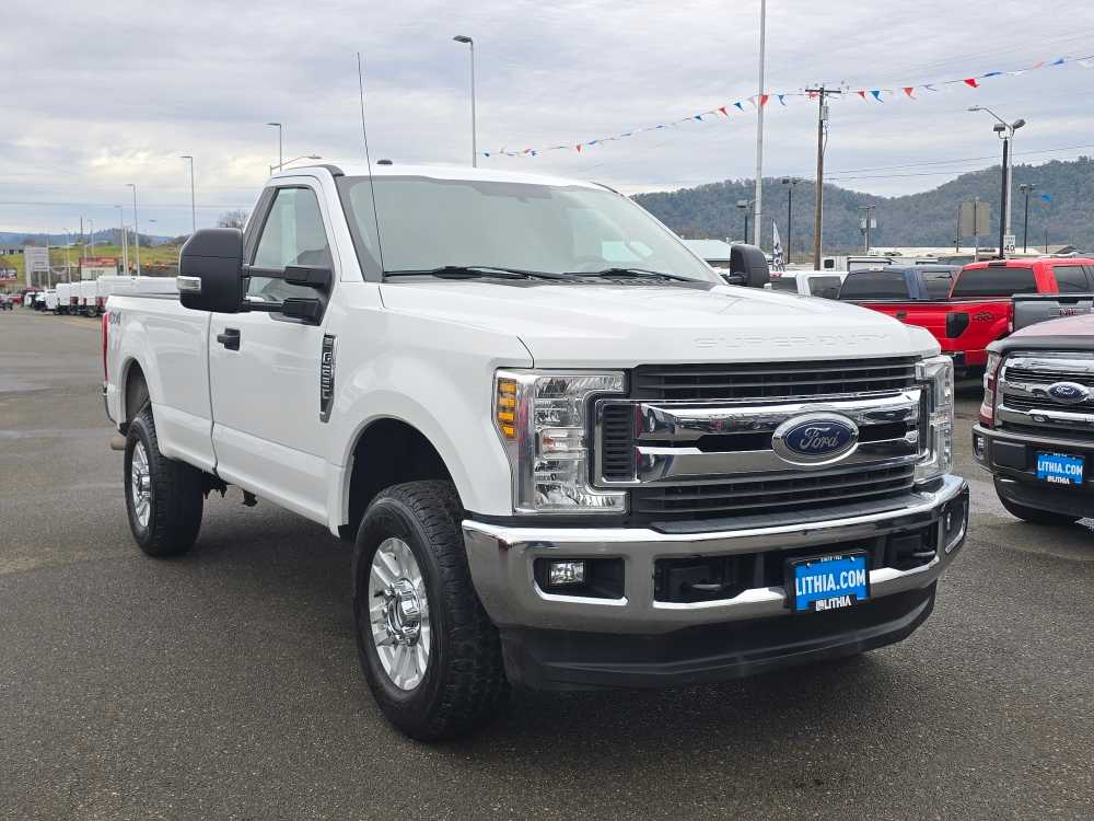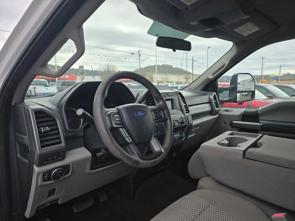 SecuriCode Drivers Side Keyless Entry Keypad, Reverse Sensing System, 8-Way Power Drivers Seat, Autolock/Auto Unlock, Fog Lamps, ELECTRONIC-LOCKING W/3.73 AXLE RATIO, SPARE TIRE, WHEEL, CARRIER & JACK, power-folding, telescoping, power glass, turn signal, high intensity LED security approach lamps and utility lighting system (LED side-mirror spotlights), TIRES: LT275/70RX18E BSW Automatic Transmission (4), ADJUSTABLE PEDALS, FIXED REAR-WINDOW W/DEFROST, Flex-Fuel badge on fleet orders only (STD). 2019 Ford Super Duty F-250 Pickup with Oxford White exterior and Medium Earth Gray interior features a 8 Cylinder Engine with 385 HP at 5750 RPM*. Non-Smoker vehicle