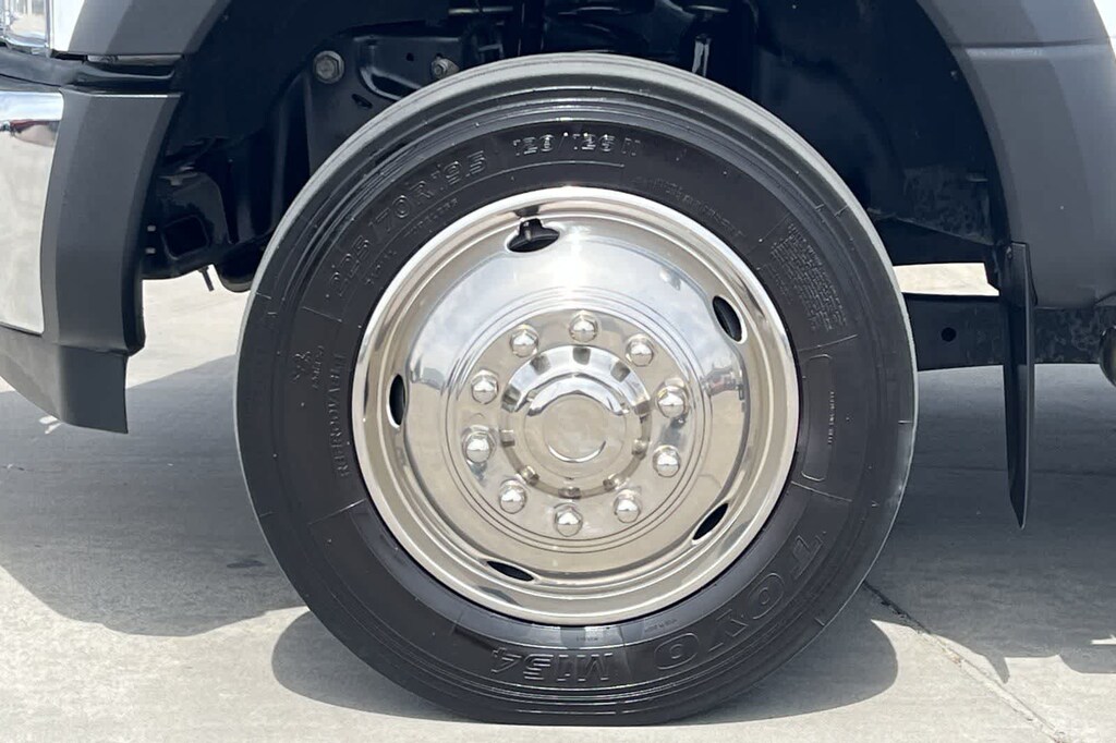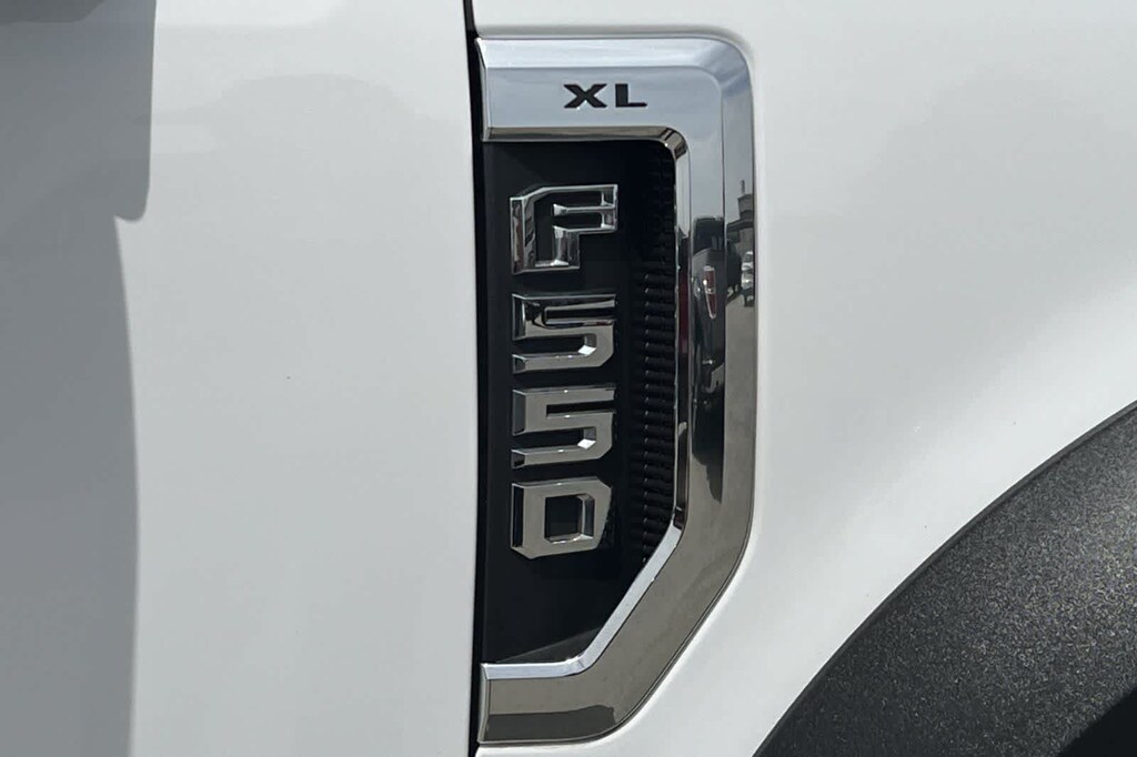 This F-550SD XL is finished in the Oxford White exterior paint and Medium Earth Gray Vinyl interior.