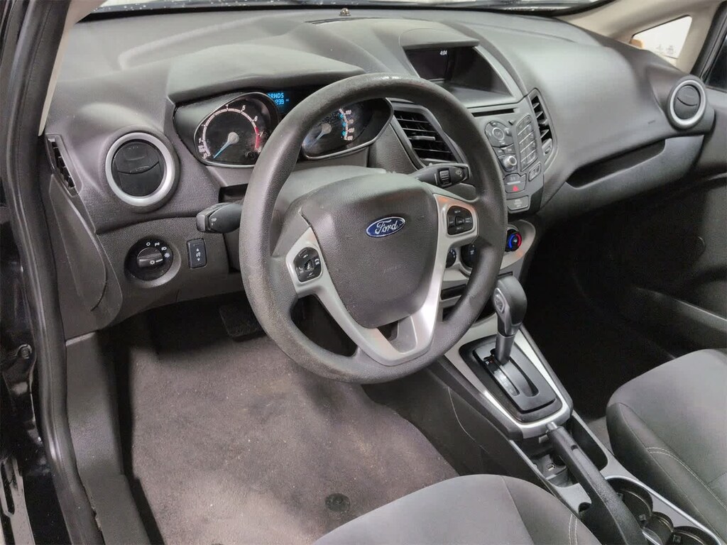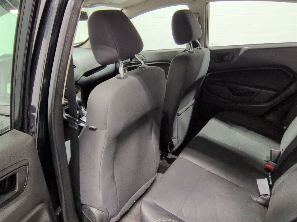Fiesta SE is nicely equipped with Equipment Group 200A, 6 Speakers, ABS brakes, Air Conditioning, Alloy wheels, AM/FM radio, Brake assist, Bumpers: body-color, CD player, Compass, Delay-off headlights, Driver door bin, Driver vanity mirror, Dual front impact airbags, Dual front side impact airbags, Electronic Stability Control, Emergency communication system: 911 Assist, Exterior Parking Camera Rear, Front anti-roll bar, Front Bucket Seats, Front Center Armrest, Front License Plate Bracket, Front reading lights, Front wheel independent suspension, Fully automatic headlights, Illuminated entry, Knee airbag, Low tire pressure warning, Occupant sensing airbag, Overhead airbag, Overhead console, Passenger door bin, Passenger vanity mirror, Power door mirrors, Power steering, Power windows, Radio data system, Radio: AM/FM Stereo/CD Player/MP3 Capable, Rear reading lights, Rear window defroster, Rear window wiper, Remote keyless entry, Security system, Speed control, Speed-sensing steering, Split folding rear seat, Spoiler, Steering wheel mounted audio controls, SYNC Communications & Entertainment System, Tachometer, Telescoping steering wheel, Tilt steering wheel, Traction control, Trip computer, Unique Cloth Front Bucket Seats, Variably intermittent wipers, and Wheels: 15 Sparkle Silver Painted Aluminum.