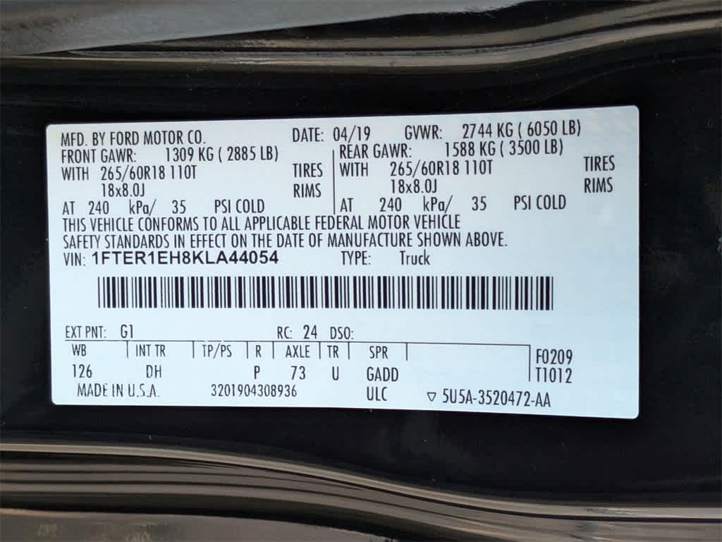 2019 Ford Ranger Lariat RWD EcoBoost 2.3L I4 GTDi DOHC Turbocharged VCT 10-Speed Automatic