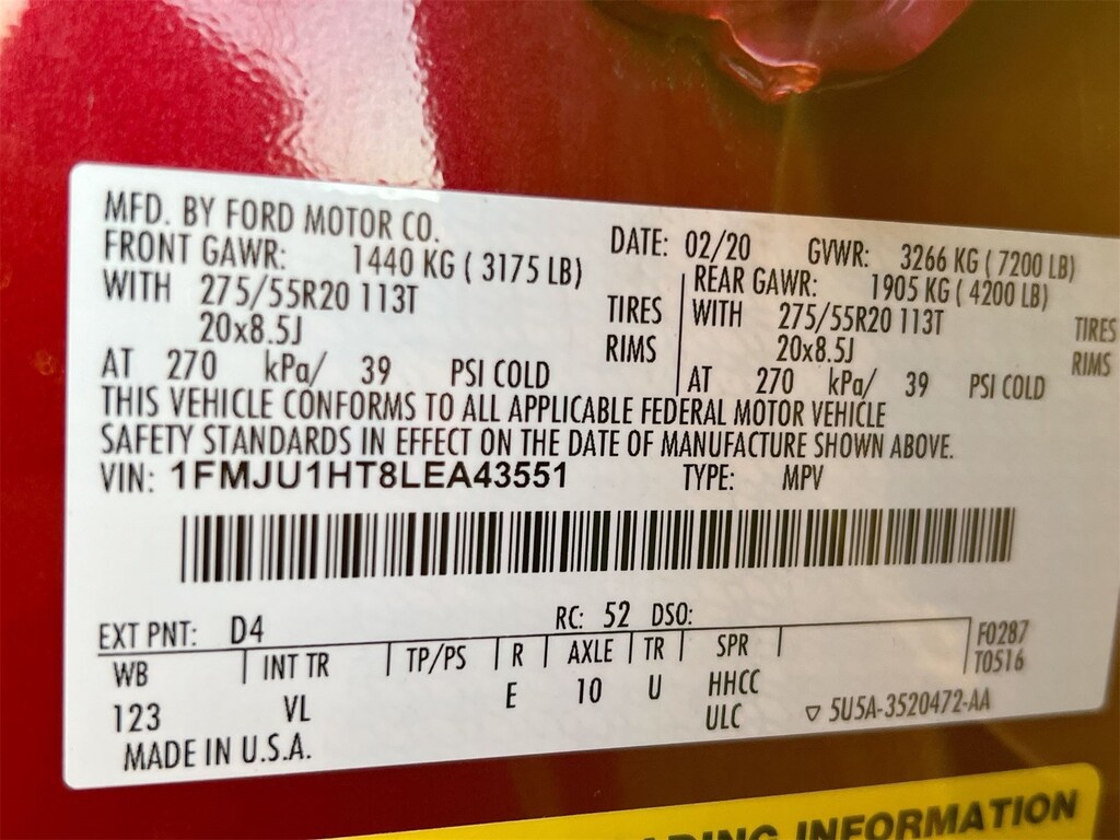 CARFAX One-Owner. 2020 Ford Expedition 4D Sport Utility XLT Red RWD EcoBoost 3.5L V6 GTDi DOHC 24V Twin Turbocharged 10-Speed Automatic