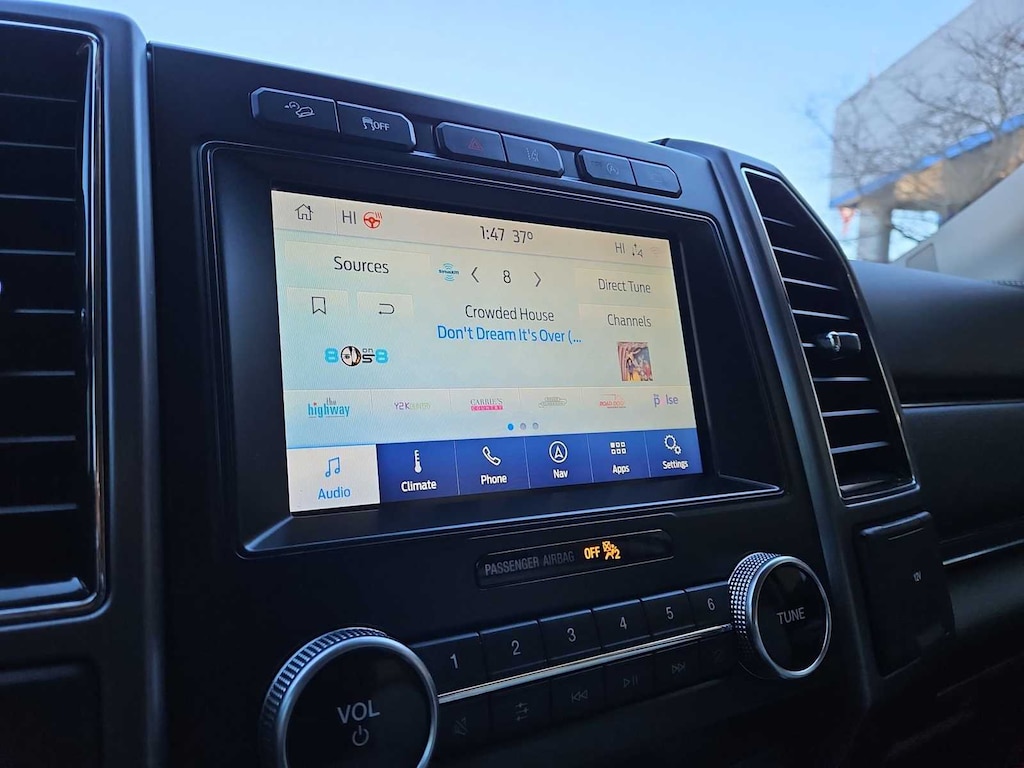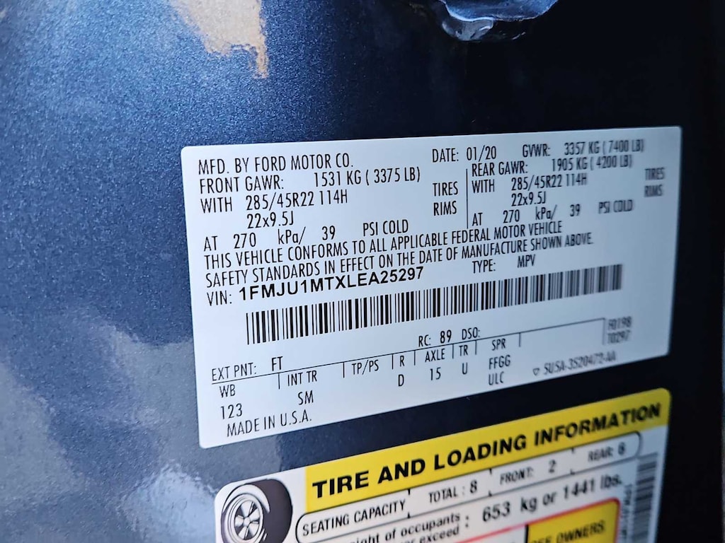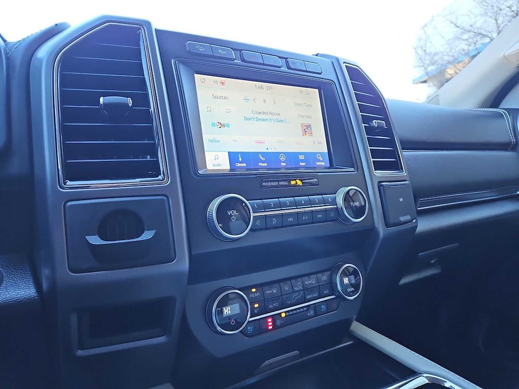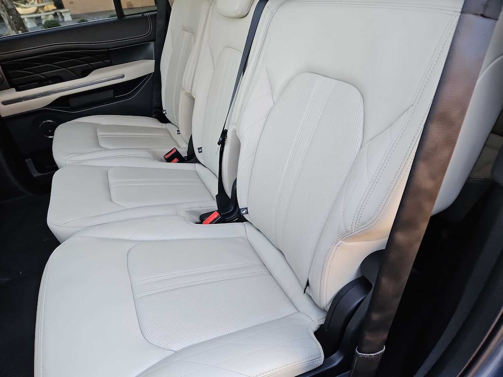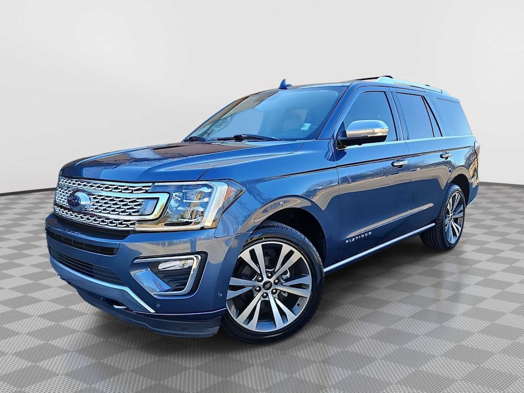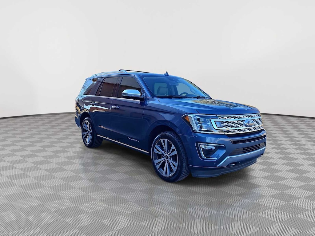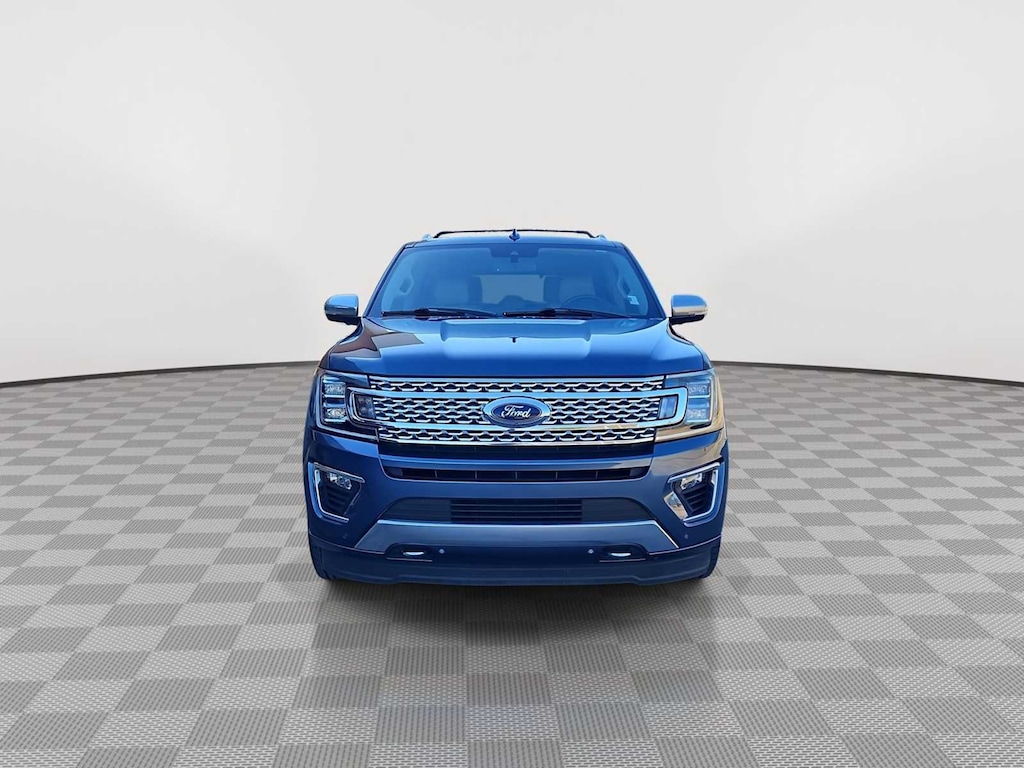 Blue Metallic 4WD. This Expedition Platinum is nicely equipped with Equipment Group 600A, 4WD, 12 Speakers, 1st & 2nd Row Floor Liners, 3.31 Axle Ratio, 3rd row seats: split-bench, 4-Wheel Disc Brakes, ABS brakes, Adaptive suspension, Adjustable pedals, Air Conditioning, Alloy wheels, AM/FM radio: SiriusXM, Auto High-beam Headlights, Auto-dimming door mirrors, Auto-dimming Rear-View mirror, Automatic temperature control, Brake assist, Bumpers: body-color, Compass, Delay-off headlights, Driver door bin, Driver vanity mirror, Dual front impact airbags, Dual front side impact airbags, Electronic Stability Control, Emergency communication system: SYNC 3 911 Assist, Exterior Parking Camera Rear, Four wheel independent suspension, Front anti-roll bar, Front Bucket Seats, Front Center Armrest, Front dual zone A/C, Front fog lights, Front reading lights, Fully automatic headlights, Garage door transmitter, Genuine wood console insert, Genuine wood dashboard insert, Genuine wood door panel insert, Heated door mirrors, Heated front seats, Heated rear seats, Heated steering wheel, Heated/Cooled Leather Front Captains Chairs, Illuminated entry, Leather steering wheel, Low tire pressure warning, Memory seat, Navigation System, Occupant sensing airbag, Outside temperature display, Overhead airbag, Overhead console, Panic alarm, Passenger door bin, Passenger vanity mirror, Pedal memory, Power door mirrors, Power driver seat, Power Liftgate, Power moonroof, Power passenger seat, Power steering, Power windows, Radio data system, Radio: B&O Sound System by Bang & Olufsen, Rain sensing wipers, Rear air conditioning, Rear anti-roll bar, Rear audio controls, Rear reading lights, Rear window defroster, Rear window wiper, Reclining 3rd row seat, Remote keyless entry, Reversible Cargo Mat, Roof rack, Security system, SiriusXM Satellite Radio, Speed control, Speed-sensing steering, Speed-Sensitive Wipers, Split folding rear seat, Steering wheel memory, Steering wheel mounted audio controls, SYNC 3 Communications & Entertainment System, Tachometer, Telescoping steering wheel, Tilt steering wheel, Traction control, Trip computer, Turn signal indicator mirrors, Variably intermittent wipers, Ventilated front seats, Voltmeter, and Wheels: 22 6-Spoke Painted Machined-Face Aluminum. Price does not include licensing costs, registration fees, taxes and dealer doc fee of $899.50 which are to be paid by the consumer. Mileage is EPA Estimated.
