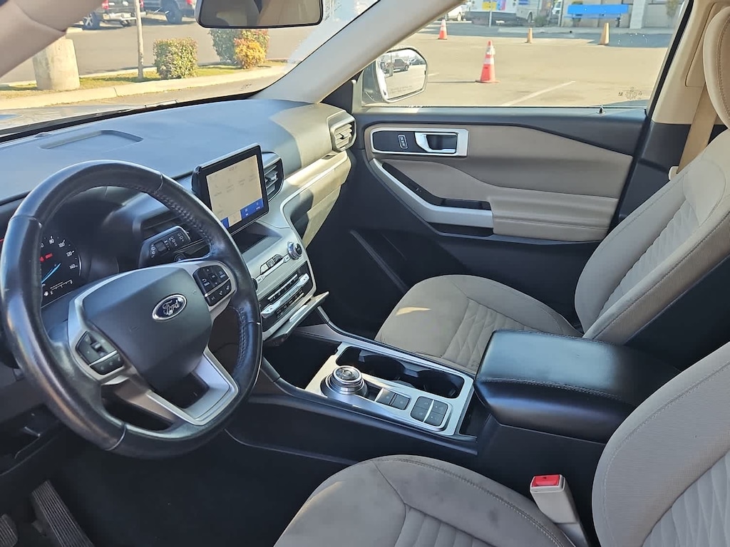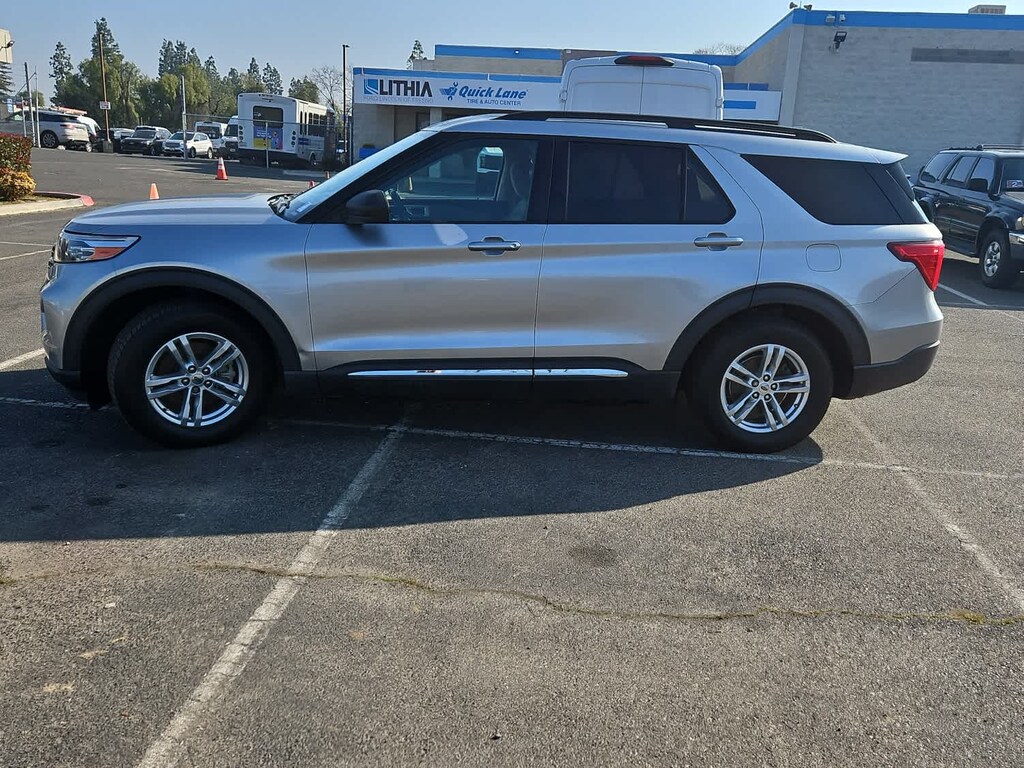 Lithia Ford and Lincoln of Fresno is pleased to offer this Iconic Silver Metallic 2020 Ford Explorer XLT for purchase, this vehicle is well equipped with many features including: Equipment Group 200A, 2nd Row 35/30/35 Bench w/E-Z Entry & Armrest, 3.58 Non-Limited-Slip Rear Axle Ratio, 3rd row seats: bench, 4-Wheel Disc Brakes, 6 Speakers, ABS brakes, Air Conditioning, Alloy wheels, AM/FM radio: SiriusXM, AM/FM Stereo, Auto High-beam Headlights, Automatic temperature control, Brake assist, Bumpers: body-color, Compass, Delay-off headlights, Driver door bin, Driver vanity mirror, Dual front impact airbags, Dual front side impact airbags, Electronic Stability Control, Emergency communication system: SYNC 3 911 Assist, Exterior Parking Camera Rear, FordPass Connect, Four wheel independent suspension, Front anti-roll bar, Front Bucket Seats, Front Center Armrest, Front dual zone A/C, Front reading lights, Fully automatic headlights, Heated door mirrors, Illuminated entry, Knee airbag, Leather steering wheel, Low tire pressure warning, Occupant sensing airbag, Outside temperature display, Overhead airbag, Overhead console, Panic alarm, Passenger door bin, Passenger vanity mirror, Power door mirrors, Power driver seat, Power Liftgate, Power passenger seat, Power steering, Power windows, Rear air conditioning, Rear anti-roll bar, Rear reading lights, Rear window defroster, Rear window wiper, Remote keyless entry, Security system, Speed control, Speed-sensing steering, Speed-Sensitive Wipers, Split folding rear seat, Spoiler, Steering wheel mounted audio controls, SYNC 3 Communications & Entertainment System, SYNC 3/Apple CarPlay/Android Auto, Tachometer, Telescoping steering wheel, Tilt steering wheel, Traction control, Trip computer, Unique Cloth Captains Chairs, Variably intermittent wipers, and Wheels: 18 5-Spoke Sparkle Silver-Painted Alum. RWD 2.3L EcoBoost I-4 10-Speed Automatic XLT