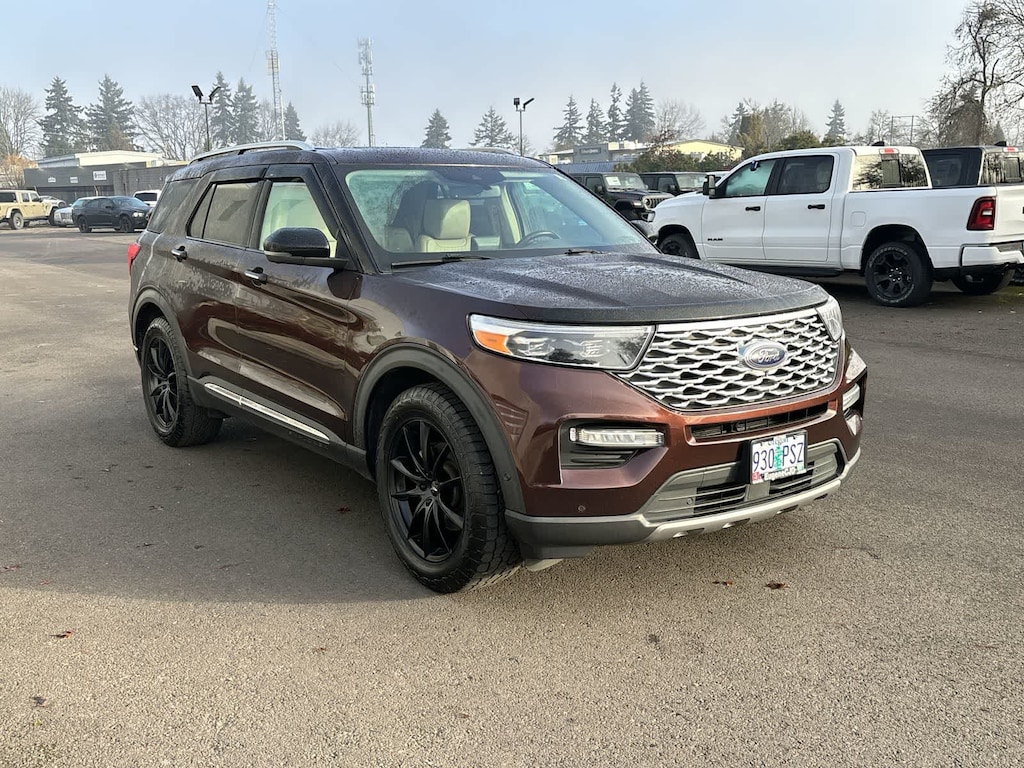 DUAL-HEADREST REAR SEAT ENTERTAINMENT SYSTEM 2-way up/down manually adjustable driver and front-passenger head restraints, WHEELS: 21 PREMIUM POLISHED ALUMINUM Tires: P275/45R21 AS BSW, WHEEL LOCK KIT (DEALER INSTALLED), TRANSMISSION: 10-SPEED AUTOMATIC W/SELECTSHIFT Active Transmission Warm-Up (ATWU) (STD). Ford Platinum with Rich Copper Metallic Tinted Clearcoat exterior and Light Sandstone interior features a V6 Cylinder Engine with 365 HP at 5500 RPM*.