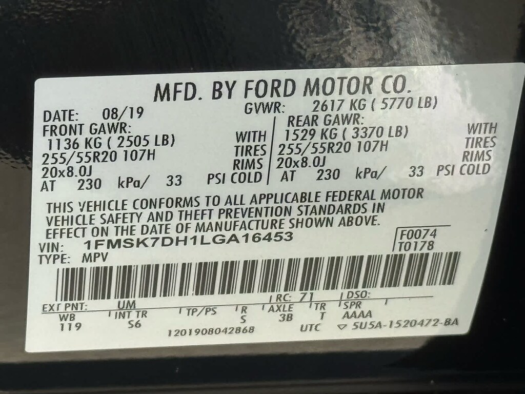 Comfort Package (1st & 2nd Row Heated Seats and Heated Steering Wheel), Equipment Group 202A (ActiveX Captains Chairs, LED Fog Lamps, and Remote Start System), Ford Co-Pilot360 Assist+ (Evasive Steering Assist, Intelligent Adaptive Cruise Control, and Voice-Activated Touchscreen Navigation System), 20 Premium Painted Aluminum Wheels, 3.58 Non-Limited-Slip Rear Axle Ratio, 3rd row seats: bench, 4-Wheel Disc Brakes, 6 Speakers, ABS brakes, Air Conditioning, Alloy wheels, AM/FM radio: SiriusXM, AM/FM Stereo, Auto High-beam Headlights, Automatic temperature control, Brake assist, Bumpers: body-color, Compass, Delay-off headlights, Driver door bin, Driver vanity mirror, Dual front impact airbags, Dual front side impact airbags, Electronic Stability Control, Emergency communication system: SYNC 3 911 Assist, Exterior Parking Camera Rear, FordPass Connect, Four wheel independent suspension, Front anti-roll bar, Front Bucket Seats, Front Center Armrest, Front dual zone A/C, Front reading lights, Fully automatic headlights, Heated door mirrors, Illuminated entry, Knee airbag, Leather steering wheel, Low tire pressure warning, Occupant sensing airbag, Outside temperature display, Overhead airbag, Overhead console, Panic alarm, Passenger door bin, Passenger vanity mirror, Power door mirrors, Power driver seat, Power Liftgate, Power passenger seat, Power steering, Power windows, Rear air conditioning, Rear anti-roll bar, Rear reading lights, Rear window defroster, Rear window wiper, Remote keyless entry, Security system, Speed control, Speed-sensing steering, Speed-Sensitive Wipers, Split folding rear seat, Spoiler, Steering wheel mounted audio controls, SYNC 3 Communications & Entertainment System, SYNC 3/Apple CarPlay/Android Auto, Tachometer, Telescoping steering wheel, Tilt steering wheel, Traction control, Trip computer, Twin Panel Moonroof, Unique Cloth Captains Chairs, Variably intermittent wipers, and Wheels: 18 5-Spoke Sparkle Silver-Painted Alum. Black 2020 Ford Explorer XLT Priced below KBB Fair Purchase Price! RWD 10-Speed Automatic 2.3L EcoBoost I-4